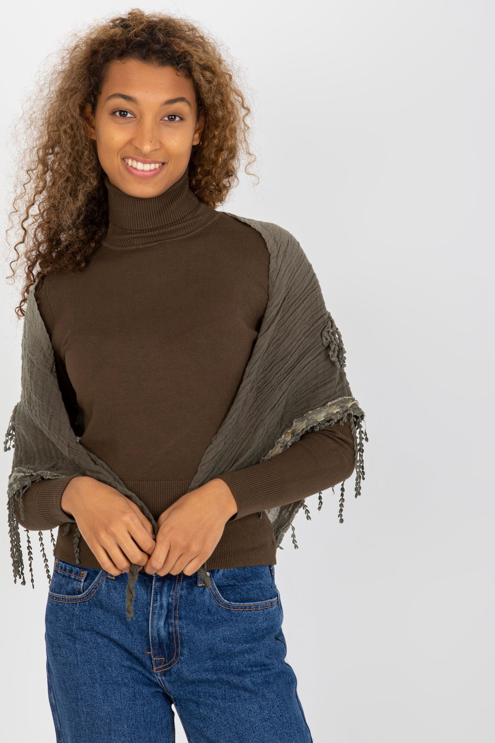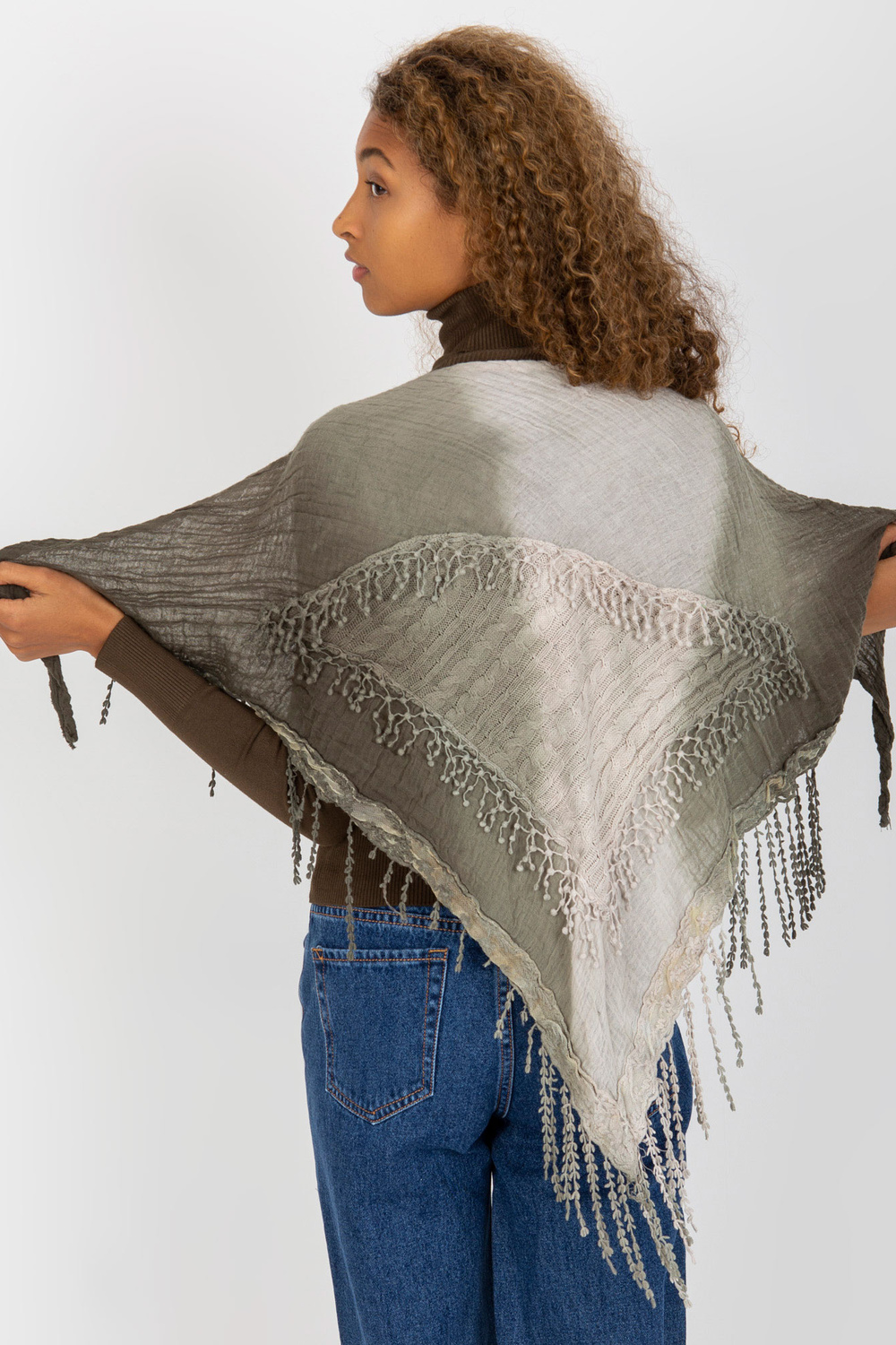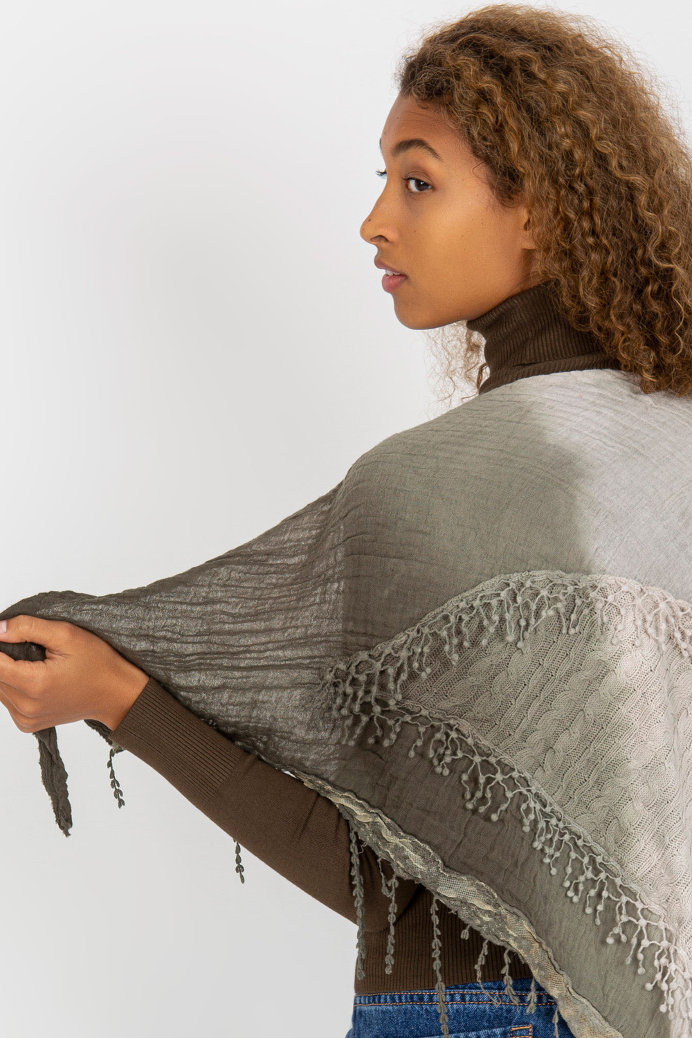 Grüne Musselinschlinge mit Zöpfen.