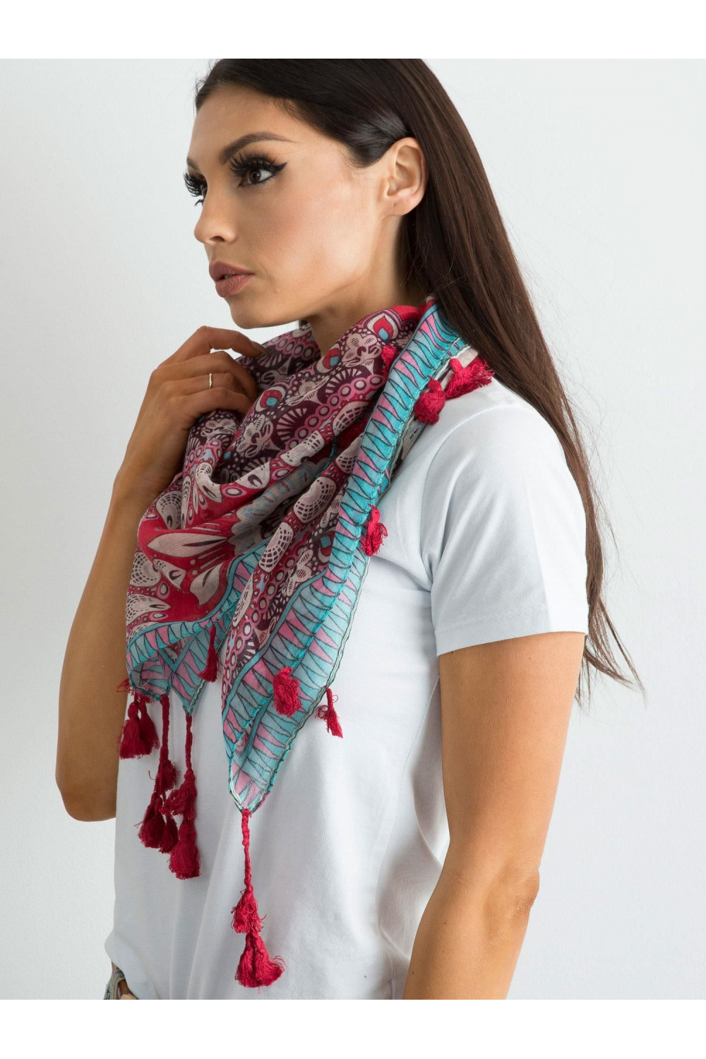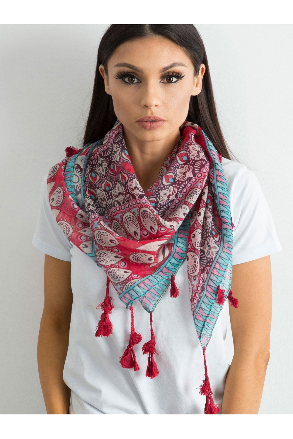 Punane etnilise trükiga sall .