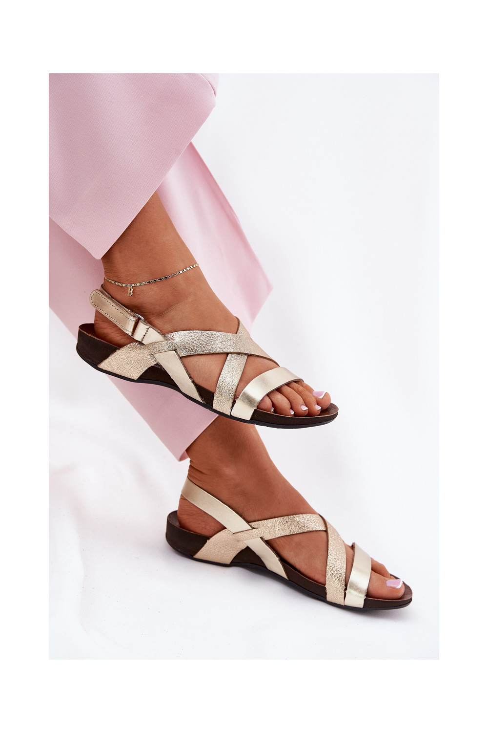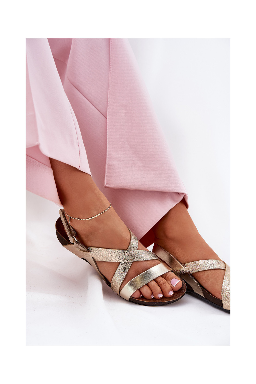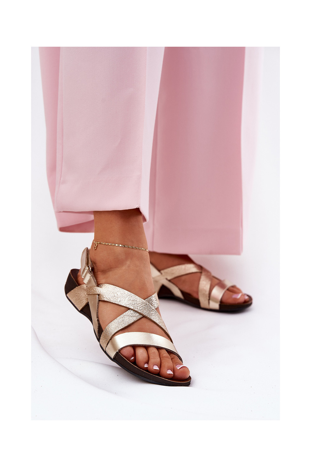 Kuldse värvi lamedad naiste sandaalid „Zazoo 40032"
