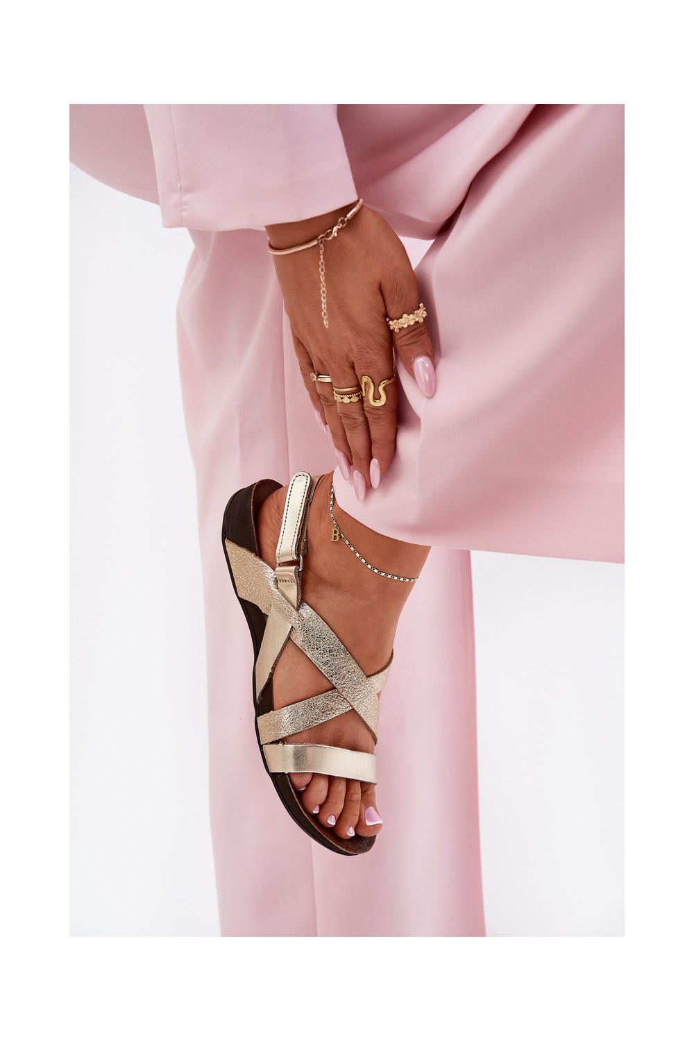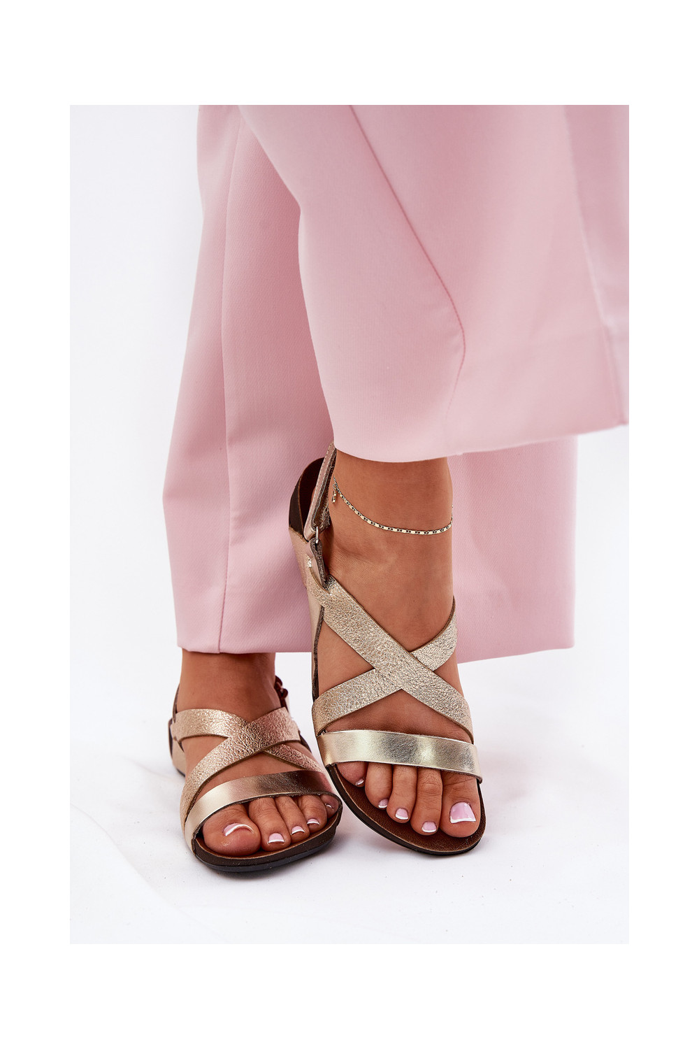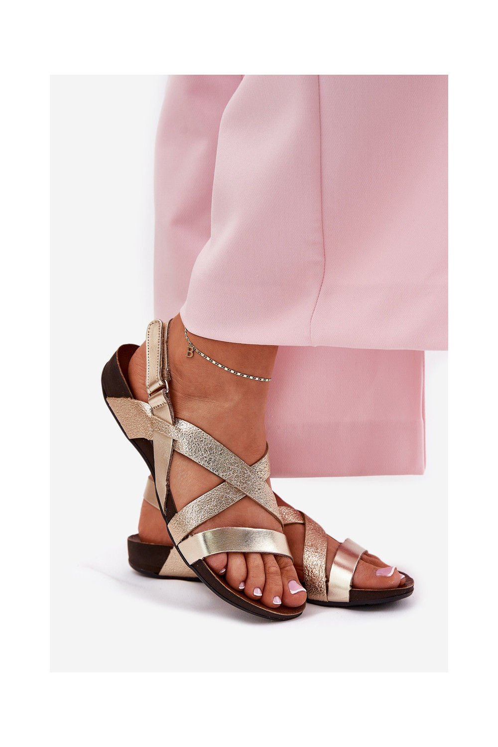 Kuldse värvi lamedad naiste sandaalid „Zazoo 40032"