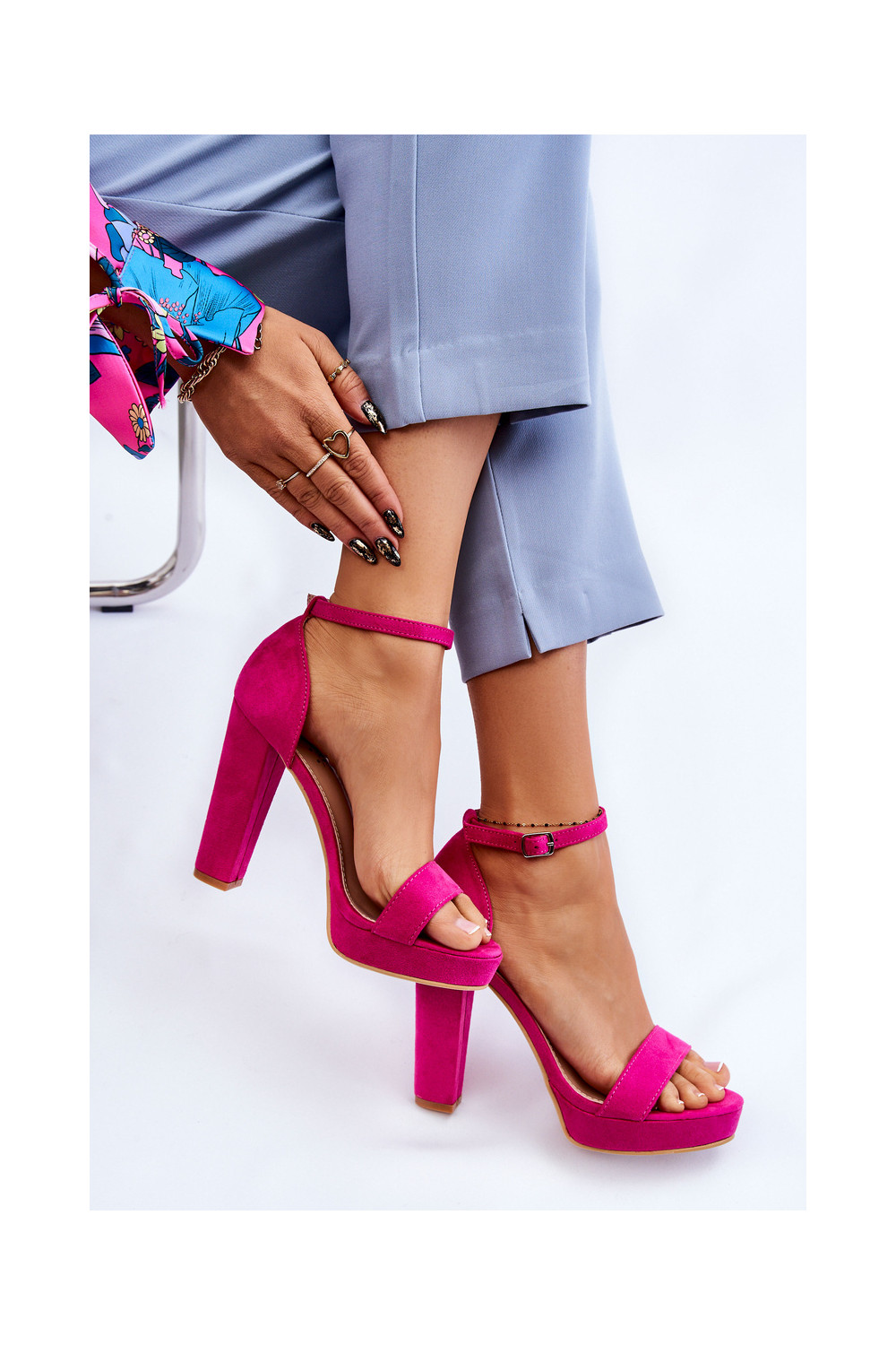 Suede Sandals On Heel Fuchsia Spectacular