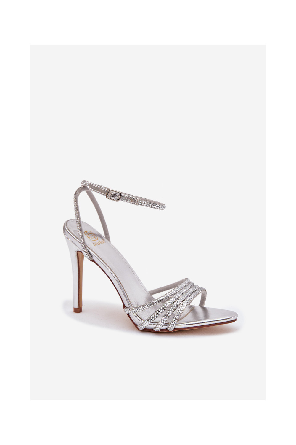 Sandaalid õhukeste kontsadega ja säravate kivikestega, hõbedane Rosavie
