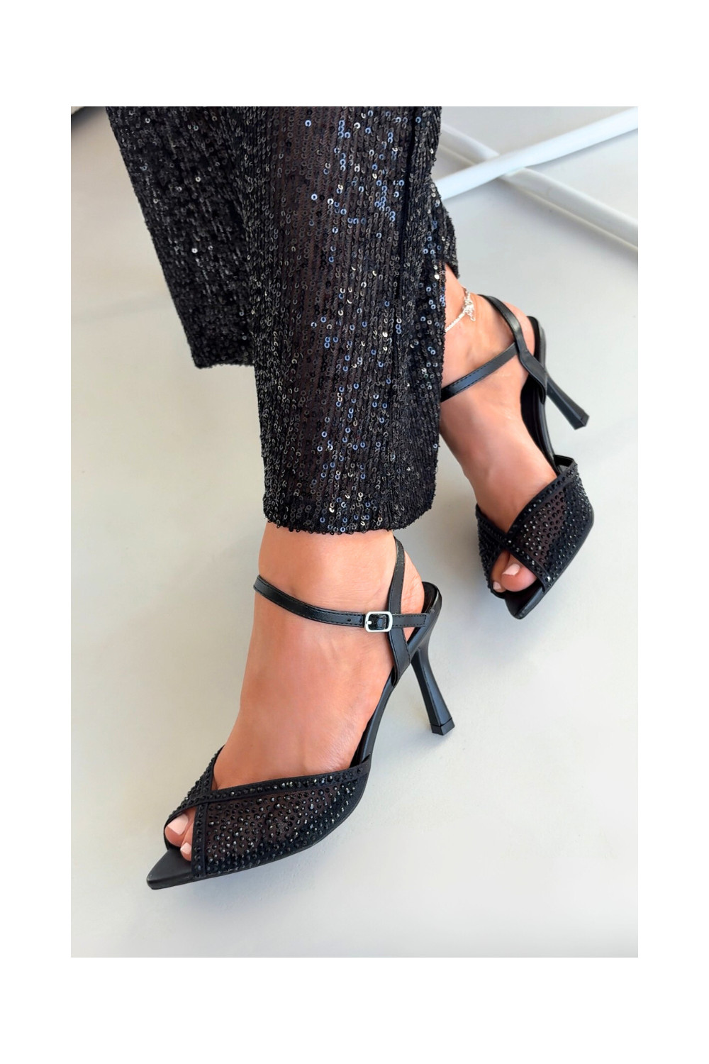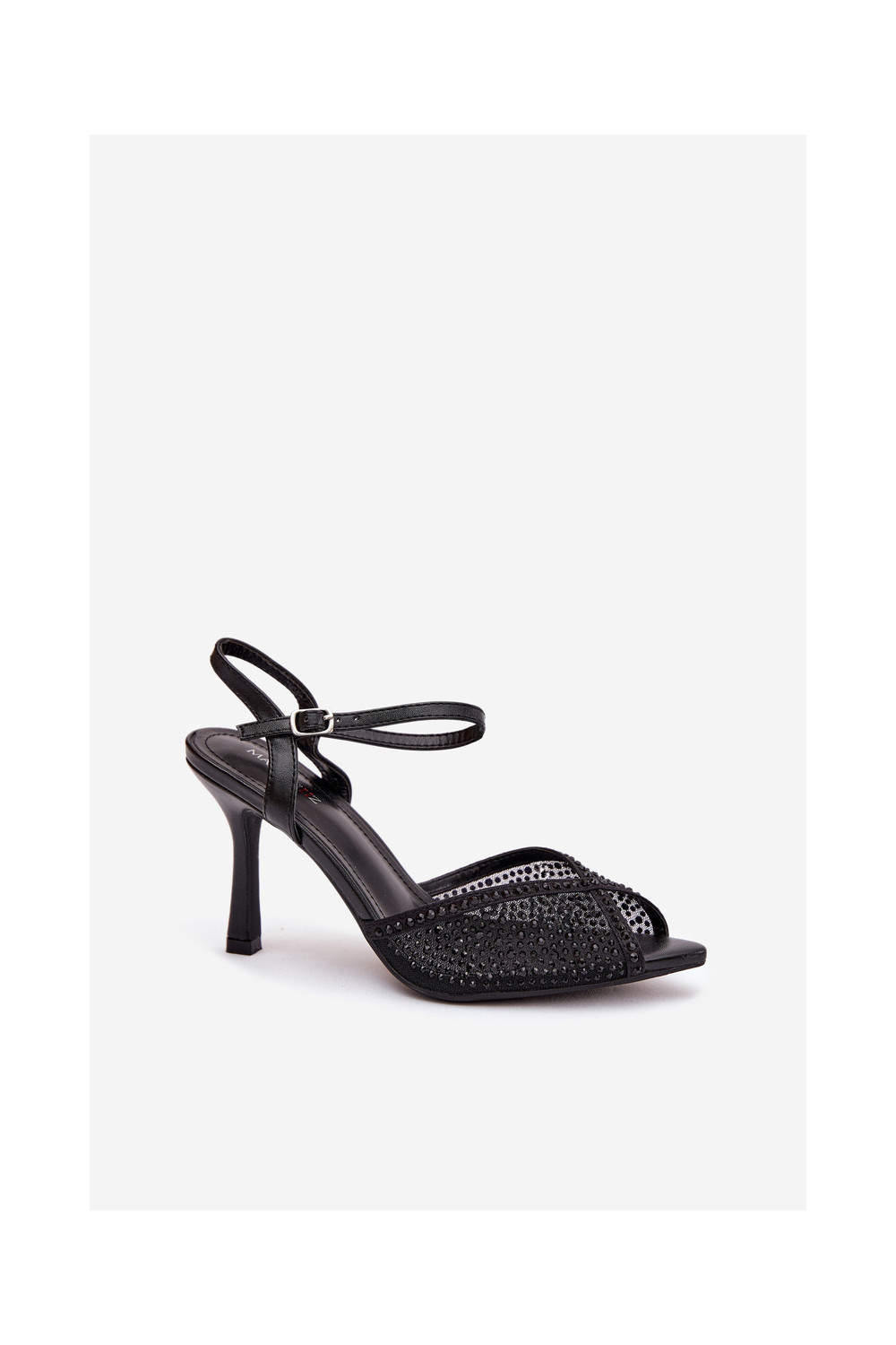 Naistesandaalid kõrge jämeda kontsaga Must Peloria
