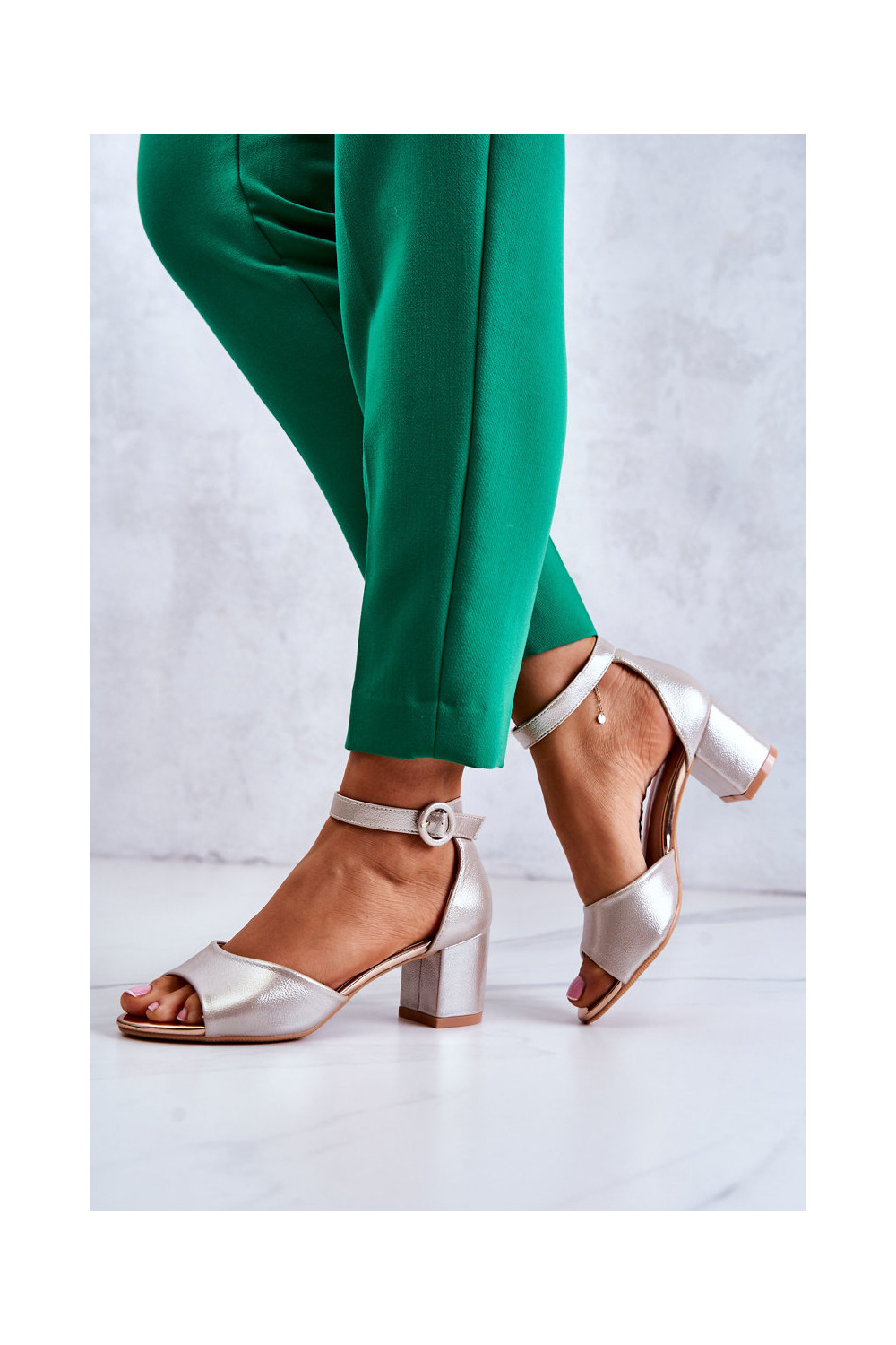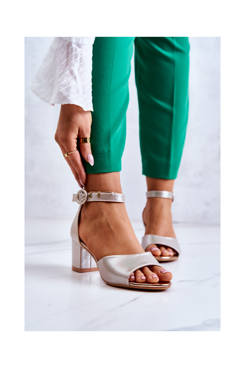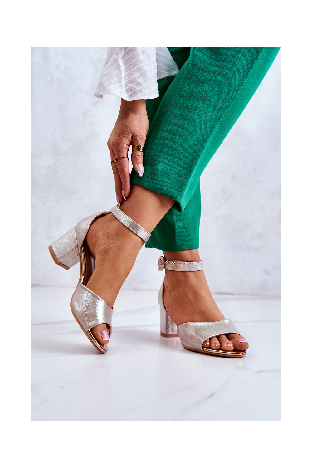 Kuldne nahast kõrge kontsaga sandaal Vinceza 20100