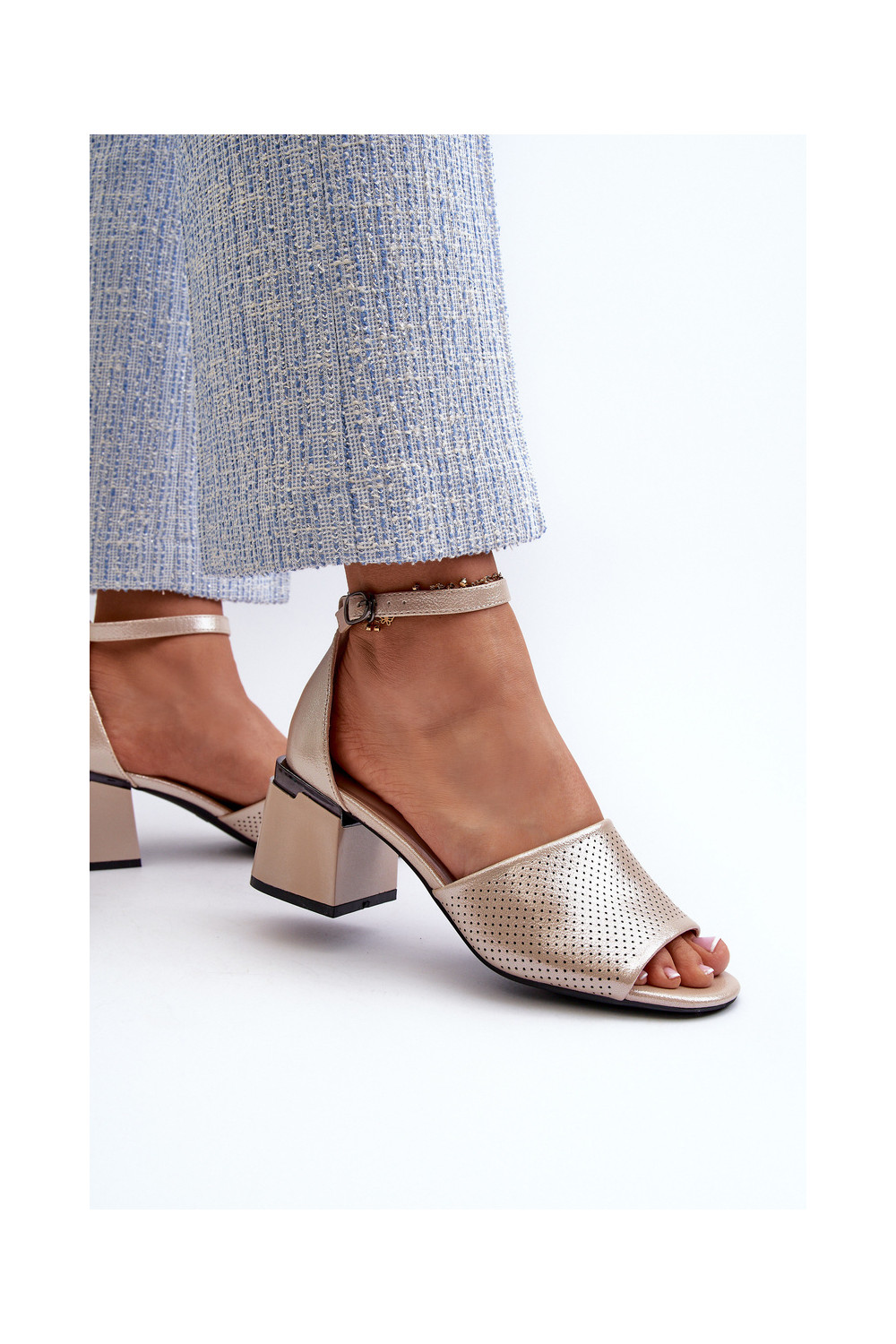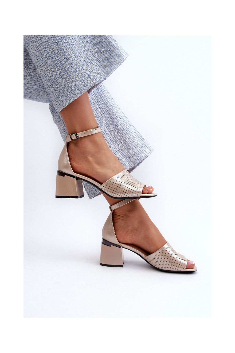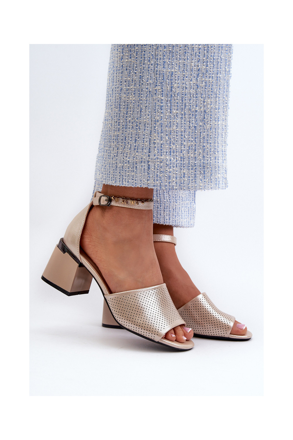Women's sandals with heels made of eco leather in gold Horissa