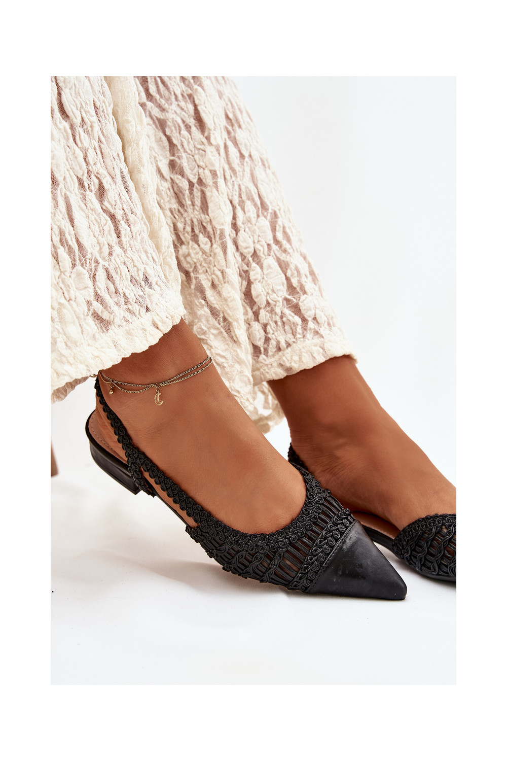 Naistelised mustad sandaalid punutud detailiga „Nivorra”