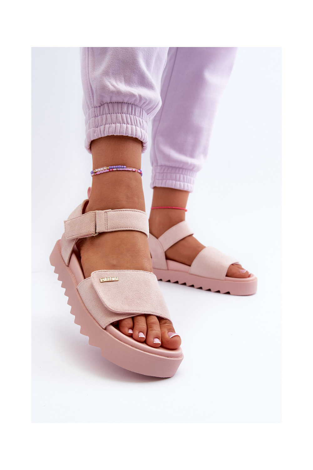 Naiste seemisnahast sandaalid platvormiga Big Star NN274701 roosa värvi