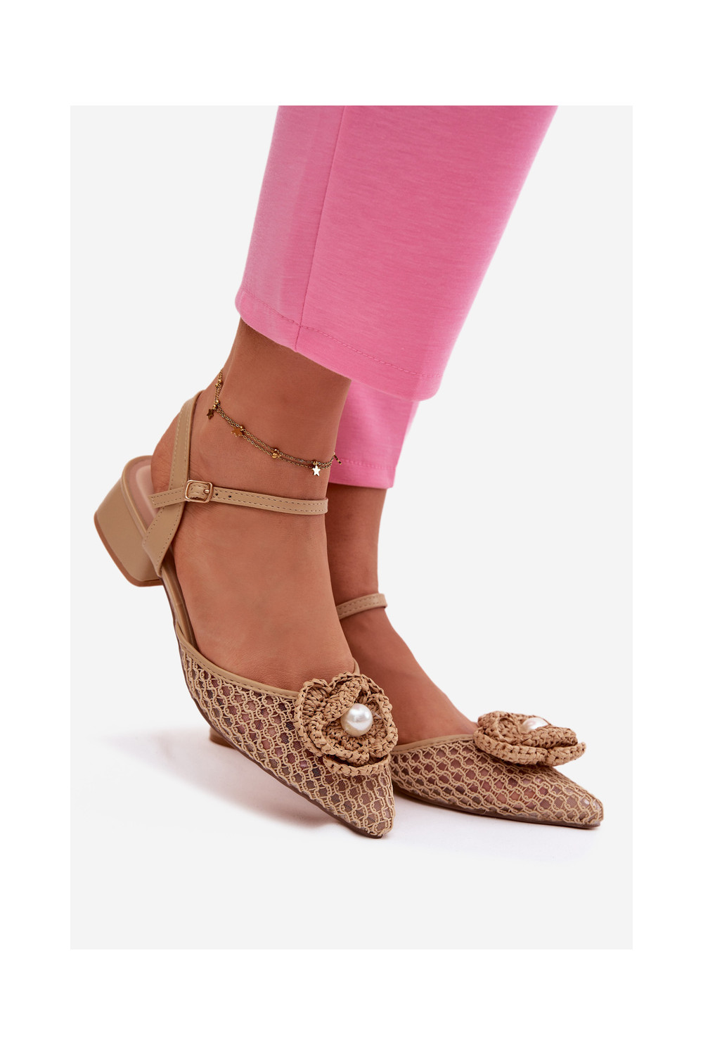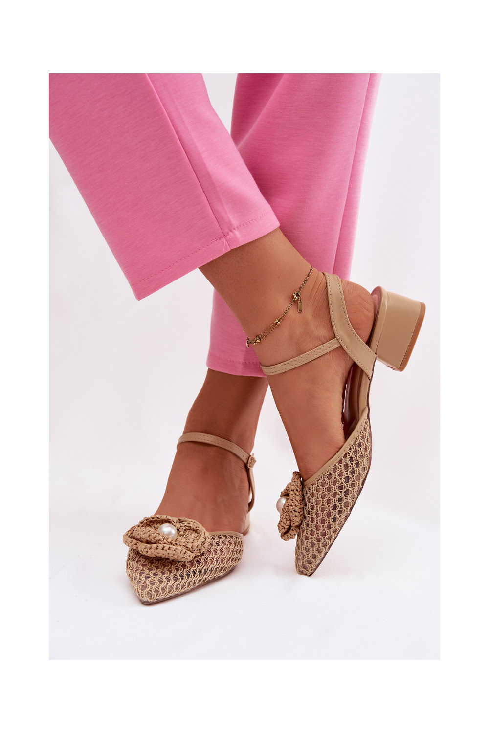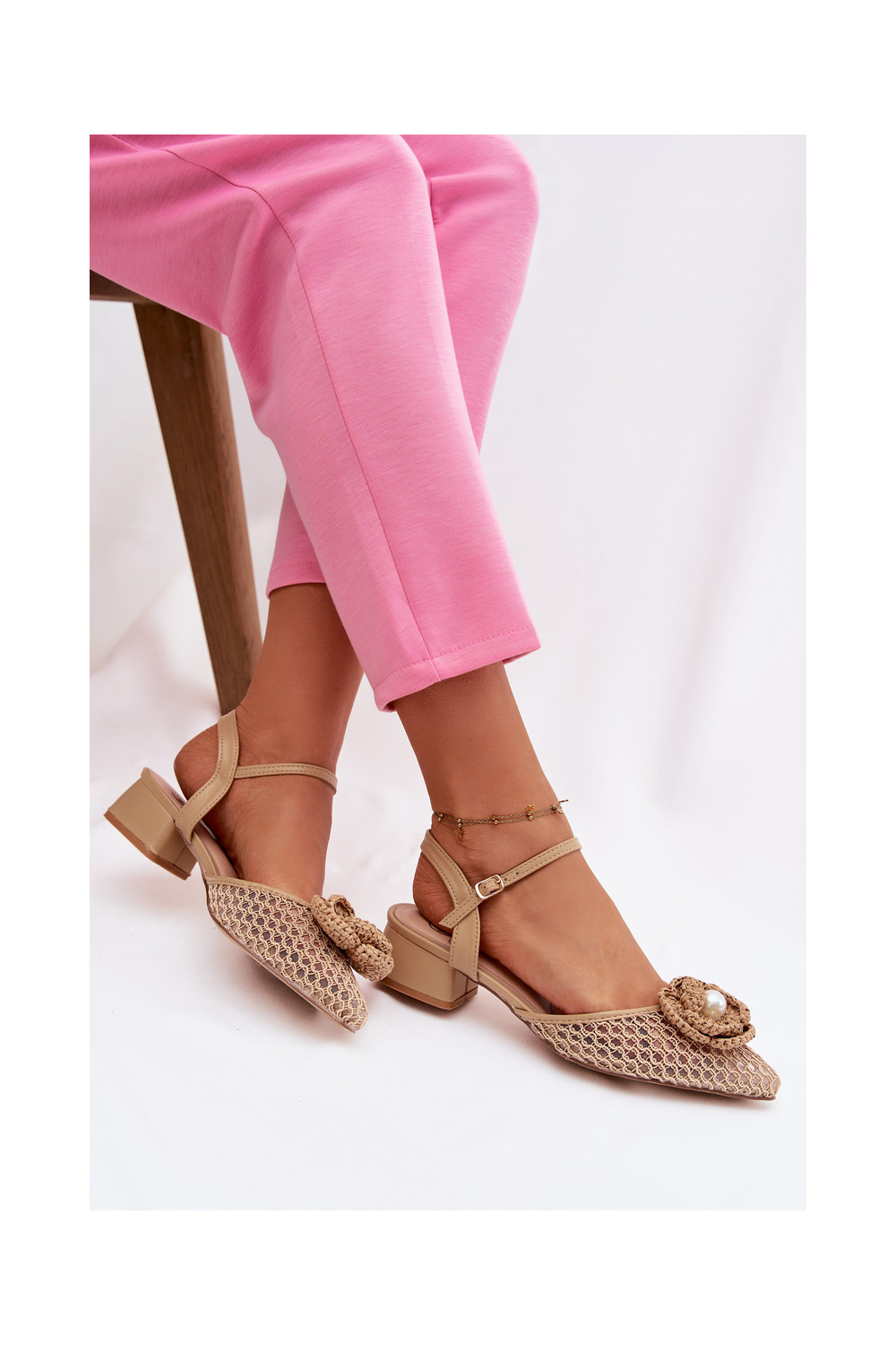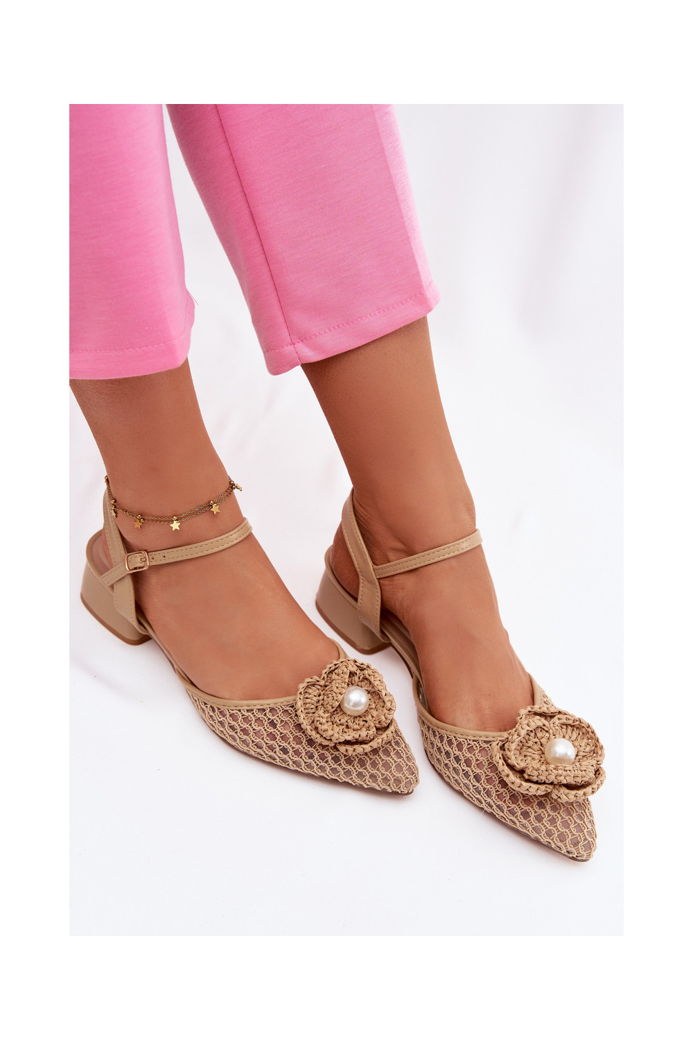 Naiste sandaalid kontsaga ja kaunistustega, liiva värviga Vionessa