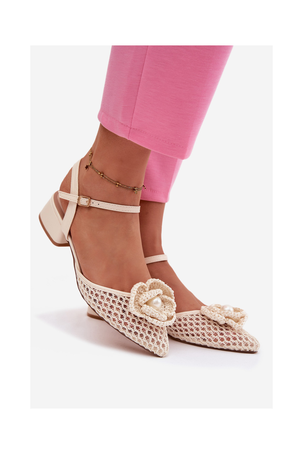 Naiste sandaalid kontsaga ja kaunistustega, elevandiluust värviga Vionessa