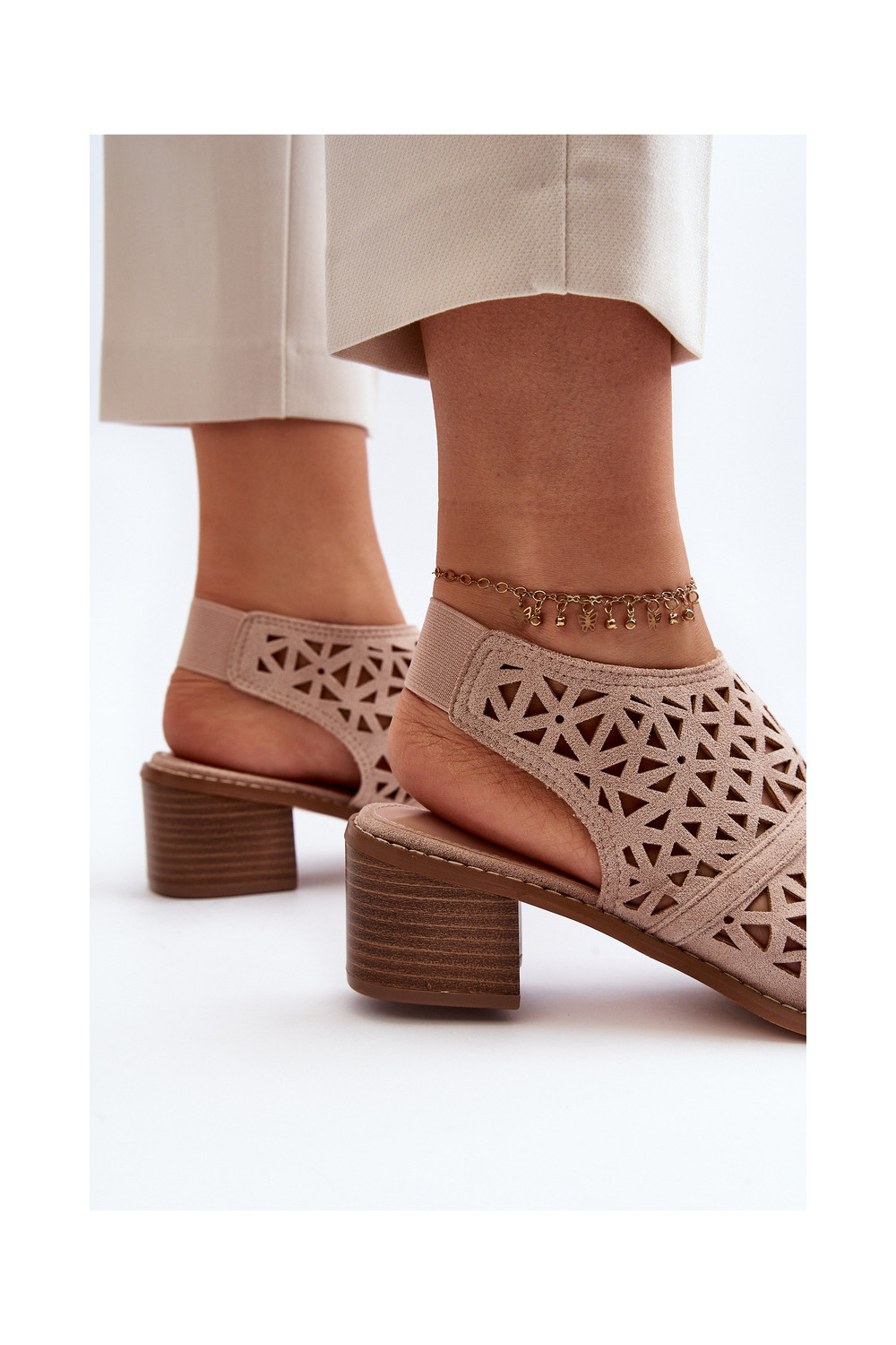 Ažuurne Elegantsed kõrge kontsaga sandaalid Nude Serapina