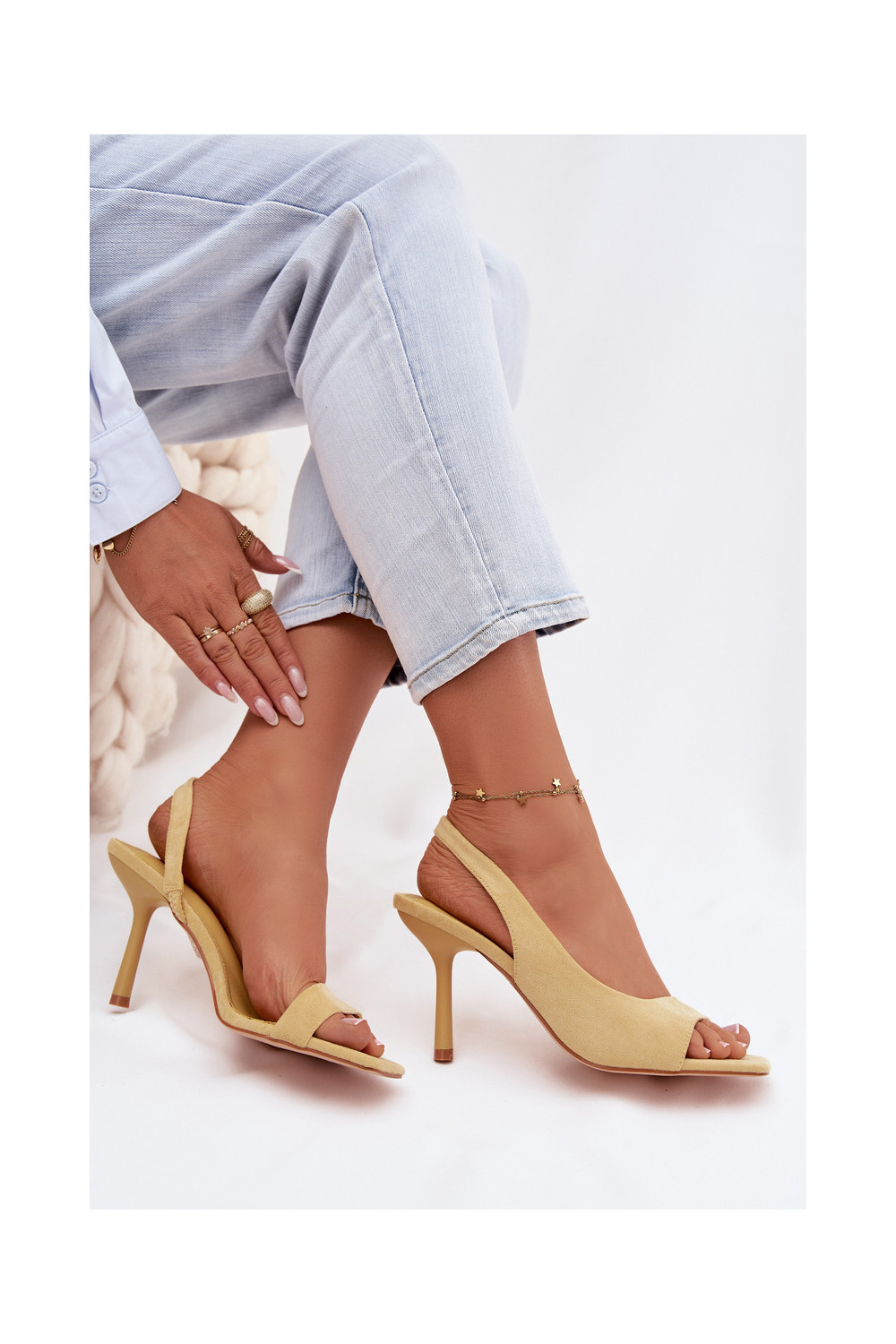 Pealistesandaalid kõrge jämeda kontsagaEco Suedeu Kollased Calvoria