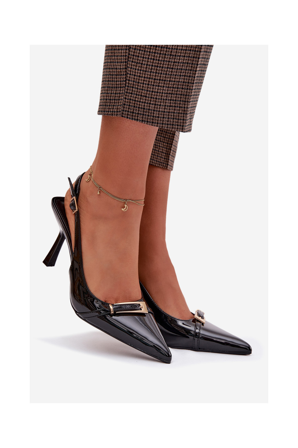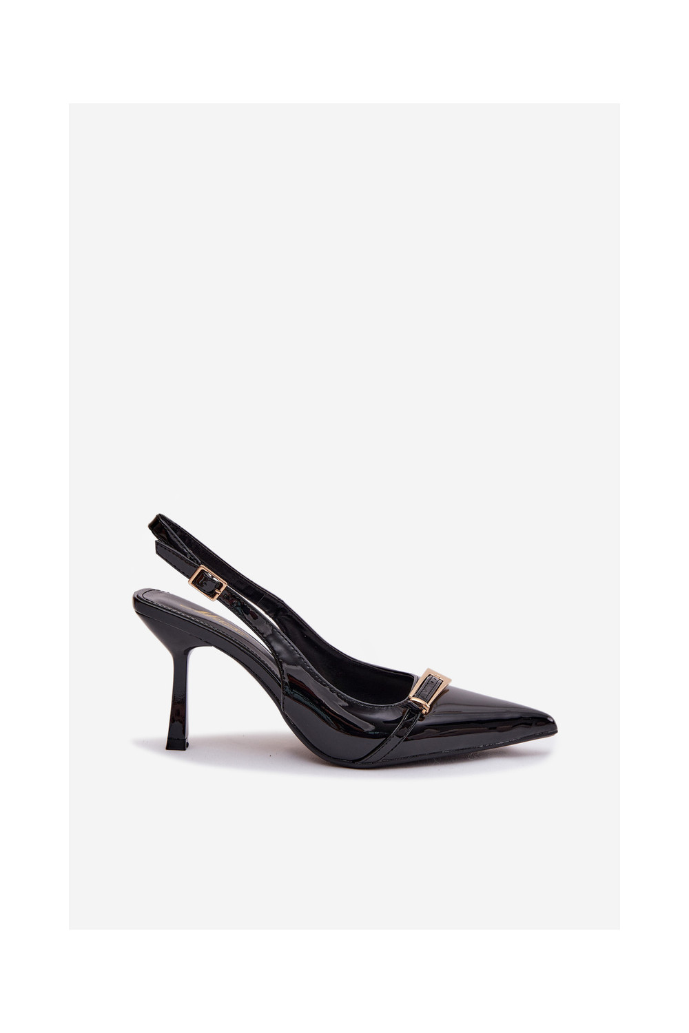 Patent Leather Women's High Heel Sandals With Gold Buckle Black Bellivra