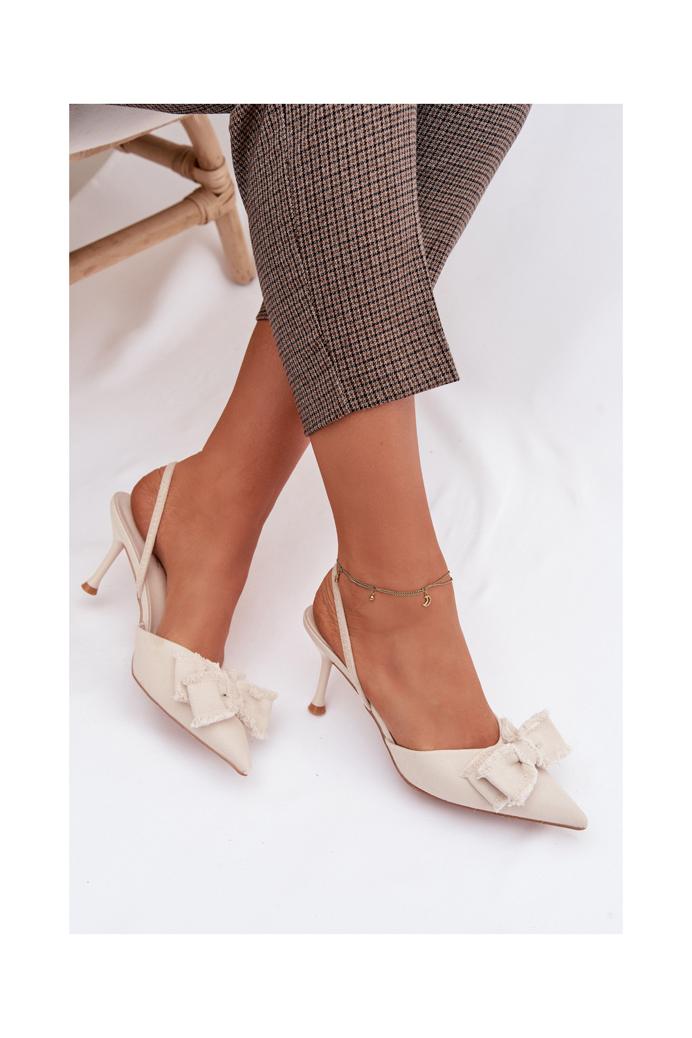 Pealistesandaalid kõrge jämeda kontsaga lipsukesega Elevandiluu värvi Hestia