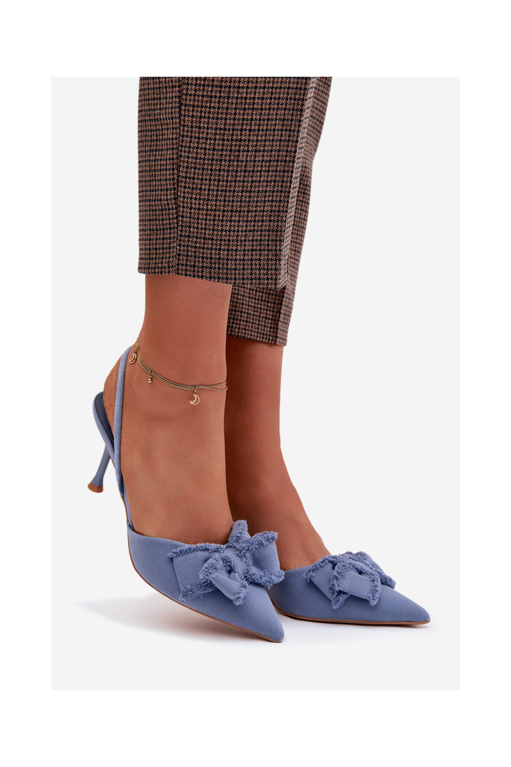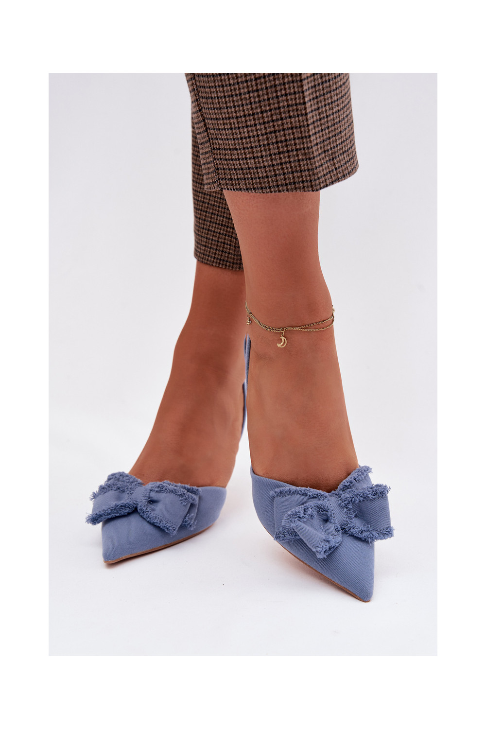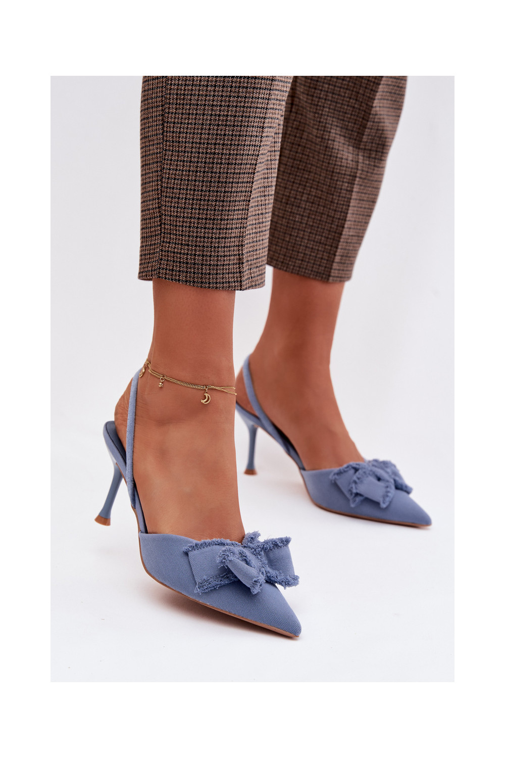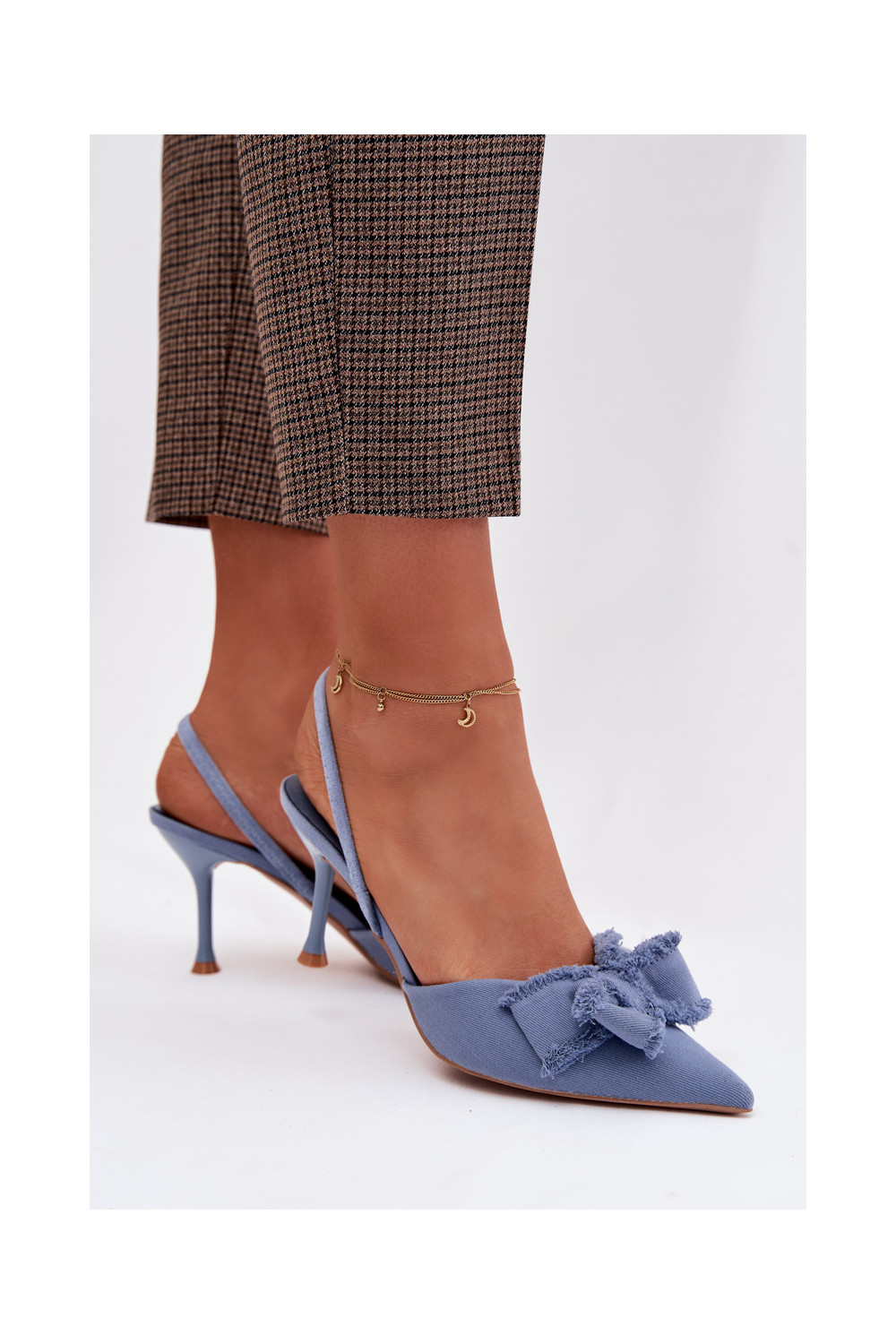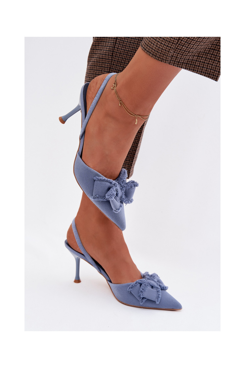 Pealistesandaalid kõrge jämeda kontsaga lipsukesega Sinist värvi Hestia