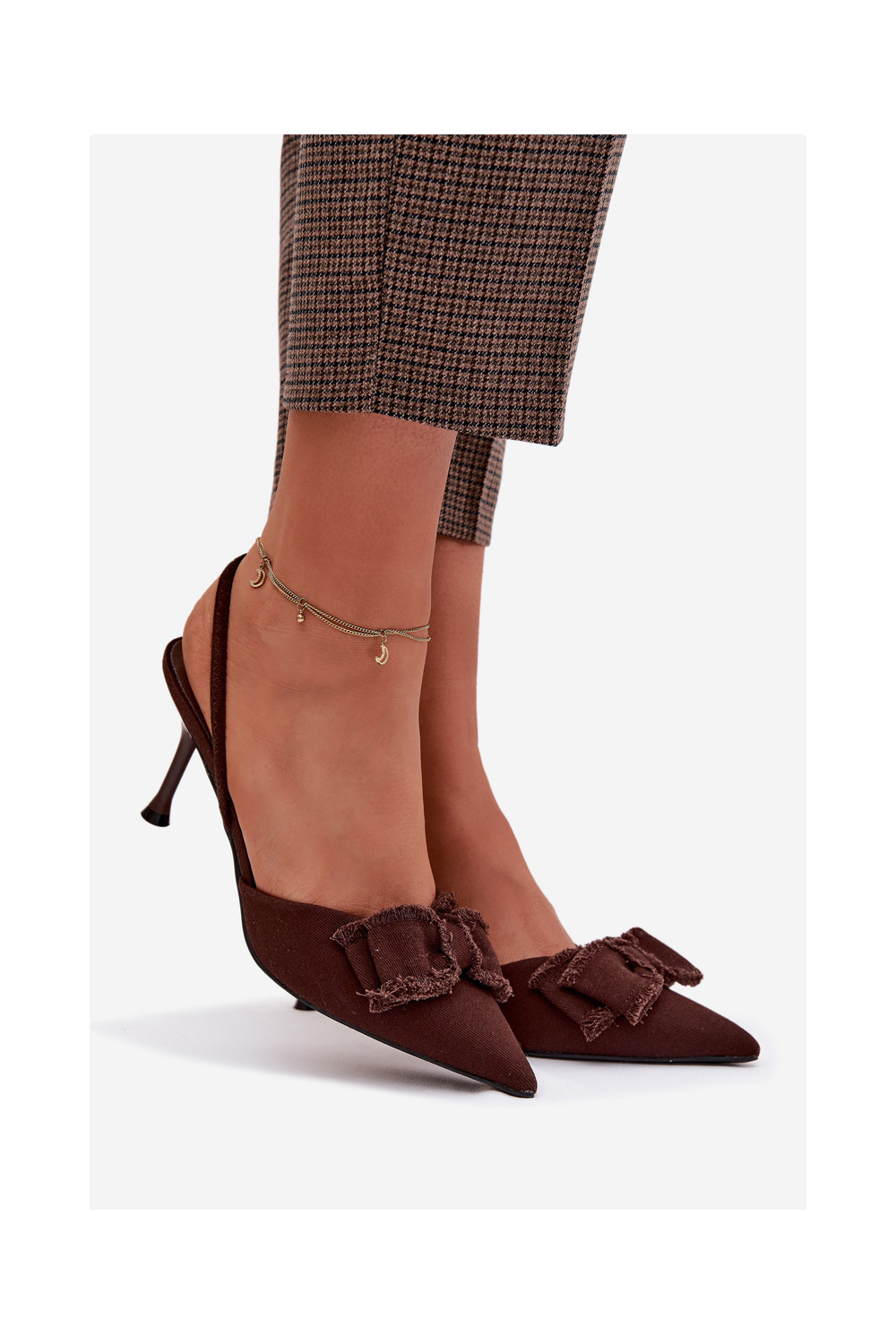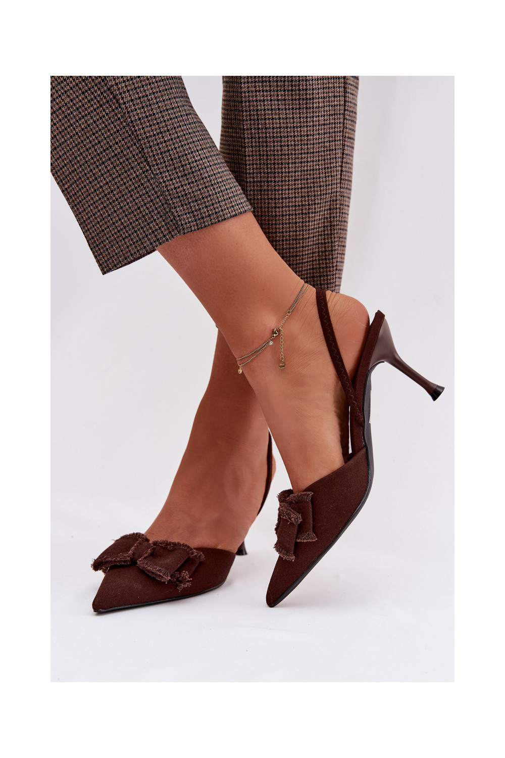 Pealistesandaalid kõrge jämeda kontsaga lipsukesega Czekoladosissee Hestia