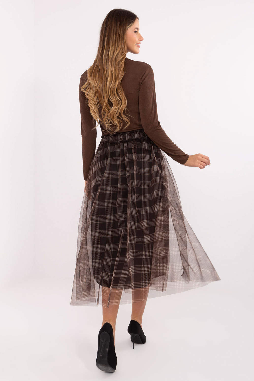 Model kannab ühe suurusega riiet. Modeli mõõtmed: pikkus 176 cm, rind 90 cm, talje 62 cm, puusad 94 cm.
