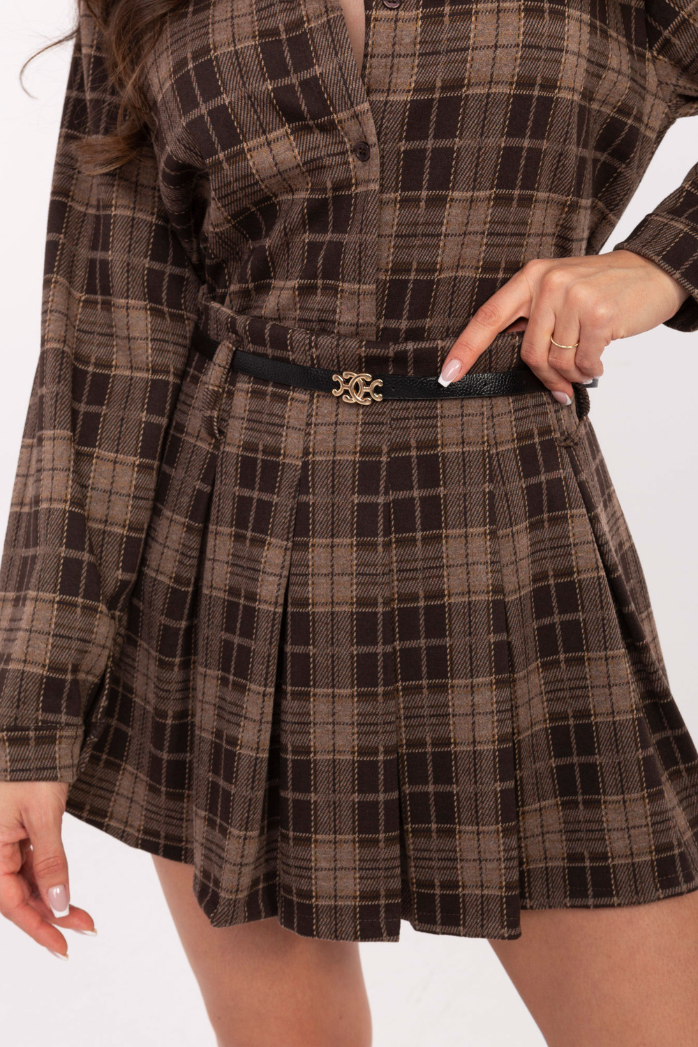 Model kannab ühe suurusega riietust. Mudi mõõdud: pikkus 173 cm, rindkere ümbermõõt 85 cm, talje ümbermõõt 62 cm, puusaümbermõõt 95 cm.