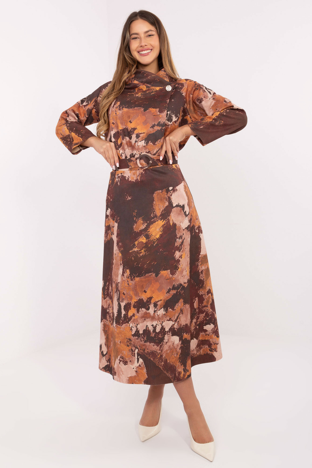 Model kannab üht suurust rõiva. Mudeli mõõdud: pikkus 176 cm, rind 90 cm, vööümbermõõt 62 cm, puusad 94 cm.