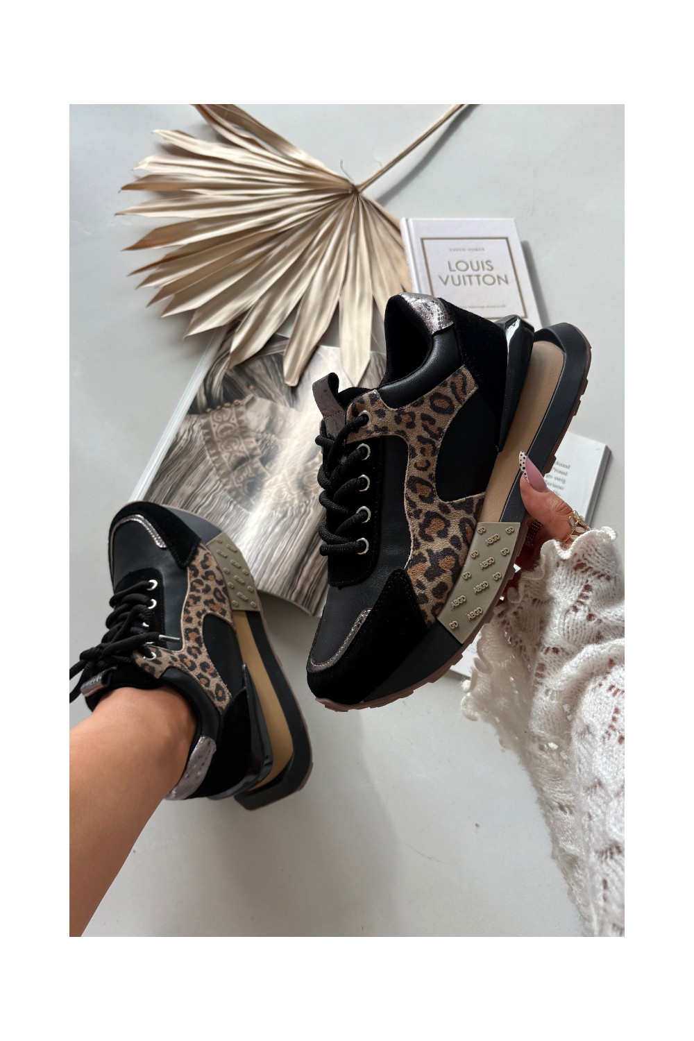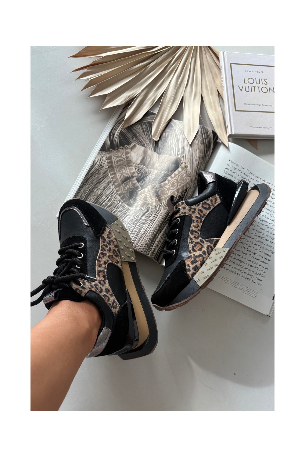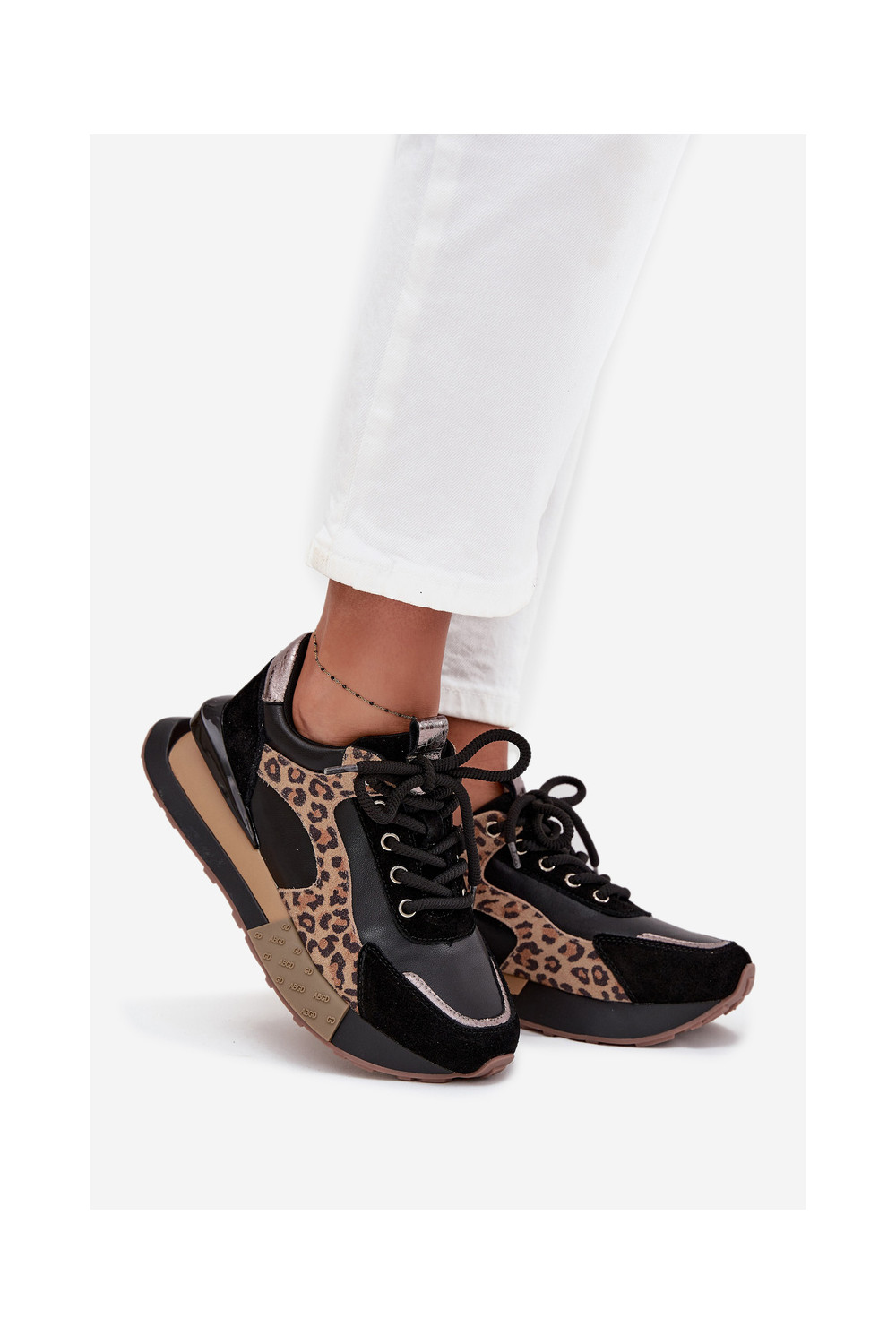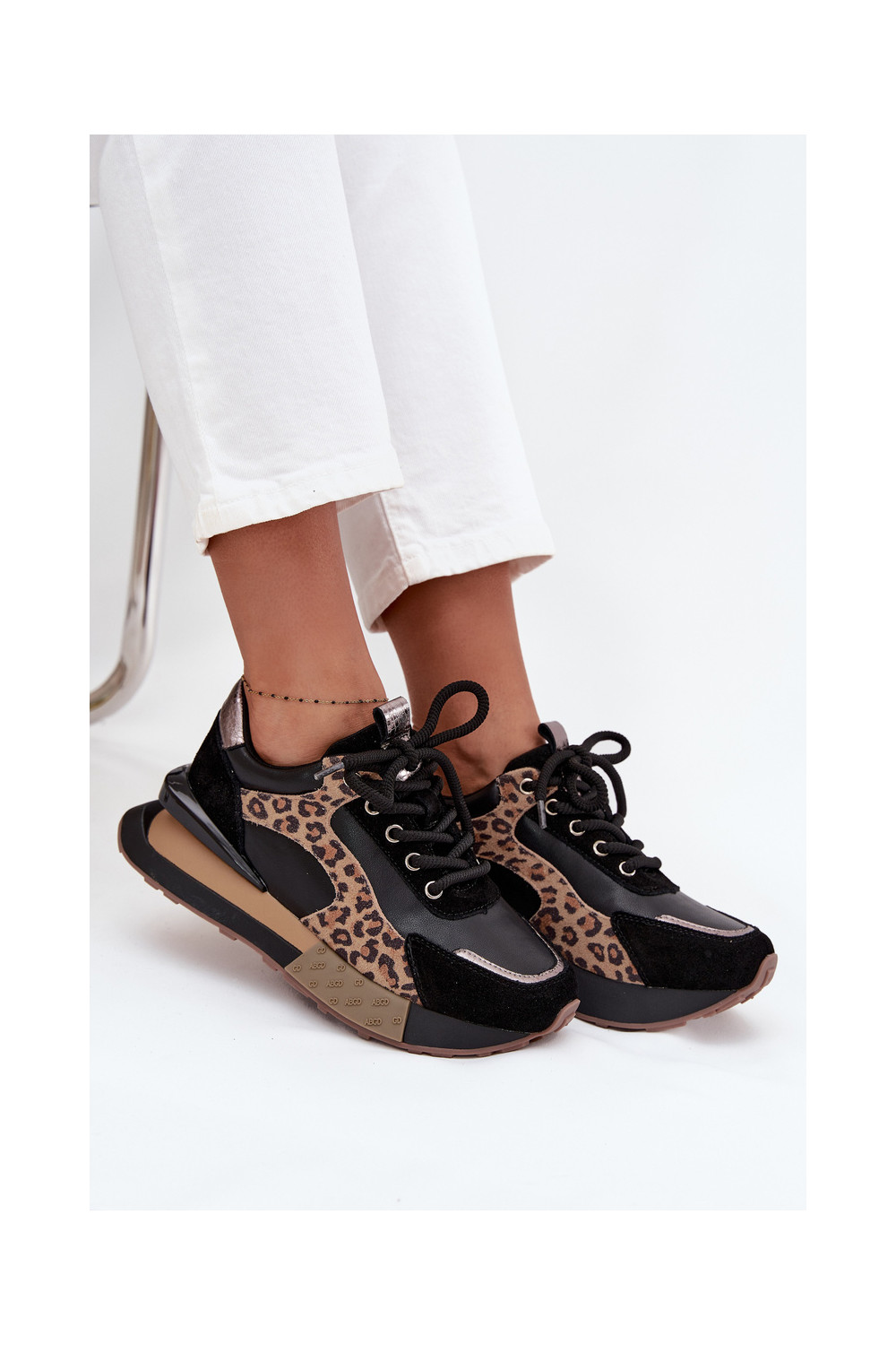 Nahast naisteriiklikud sportlikud kingad platvormiga ja leopardimustriga Artiker 55C0134 mustad