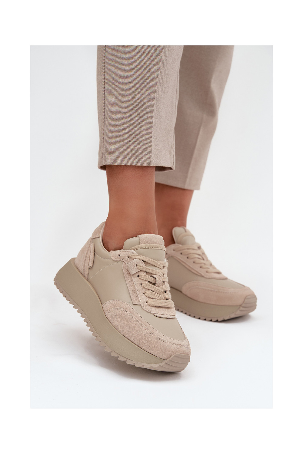 Nahast naiste spordijalatsid platvormiga Artiker 55C0021, liivakarva