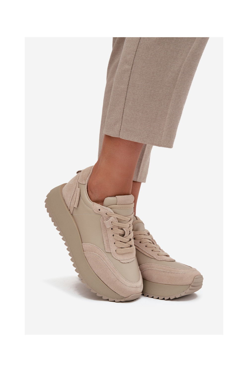 Leather Women's Sneakers on Platform Artiker 55C0021 Beige