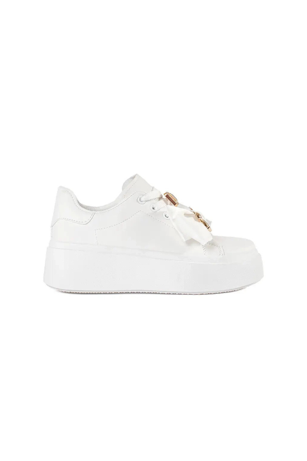 Valged Sneakers mudel jalatsid kuldsete aksessuaaridega