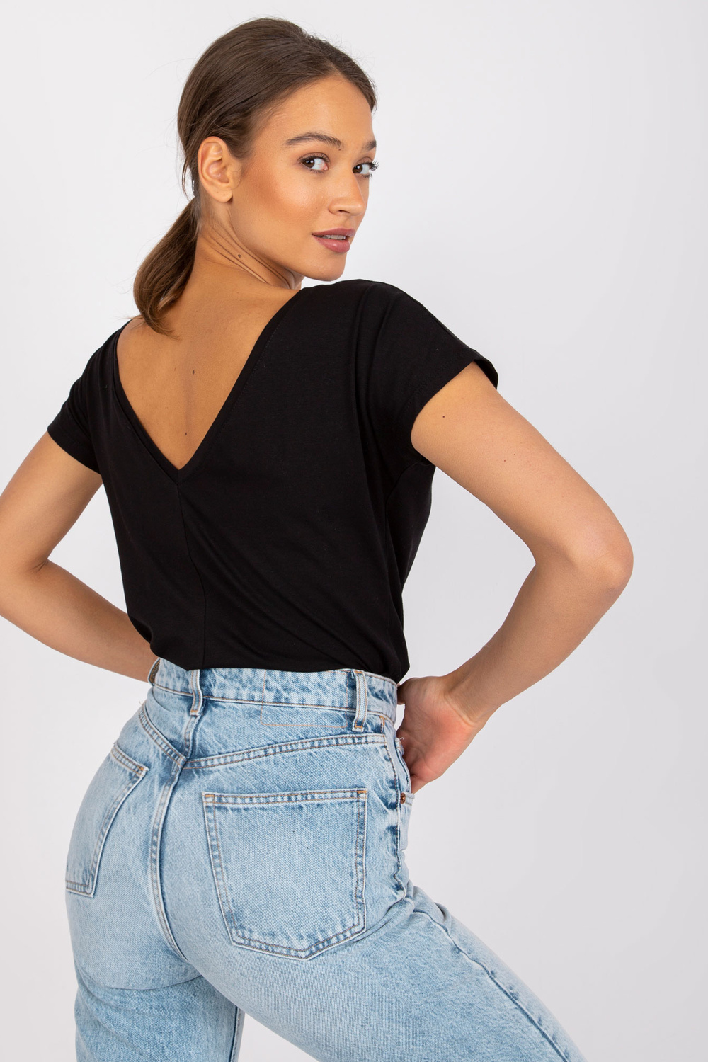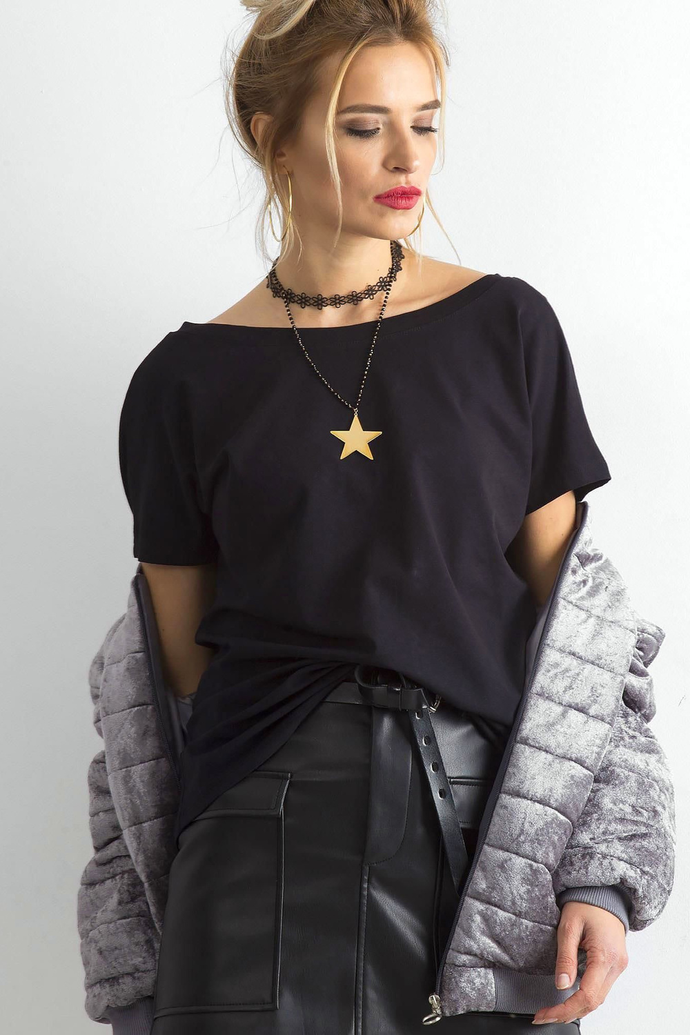 Black Fire t-särk . Siledad naiste T-särgid on kindlasti esikohal moekate rõivaste hulgas, mis peaksid täna oma privaatses garderoobis olema. Absoluutne must-have on kindlasti tavaline must T-särk, mis sobib suurepäraselt sõna otseses mõttes iga riietusega. See mudel on valmistatud õhulisest ja naturaalsest puuvillast, tugevdatud veidi elastse kangaga. Tänu sellele on T-särk ülimalt meeldiv puudutusele, kerge ja väga mugav kanda. Ei ole läbipaistev ega pigista kuskilt, seega tagab kandmisel ülima mugavuse ja mugavuse. Lõdvam lõige tekitab väga mõnusa tunde ning sügav V-kaelus seljal lisab palju naiselikku võlu. Selle sarja must põhi-T-särk on kõige parem kombineerida heledamate alaosadega – need võivad olla põhilised dressipüksid, volangseelikud või moodsad teksad. Täiendage oma garderoob uute naiste T-särkidega juba täna! Selle mudeli valikus on palju moekaid värve ja uusi lisandub pidevalt, sest tahame pidevalt pakkuda teile kõige moekamaid riideid, mida te uhkusega kannate.