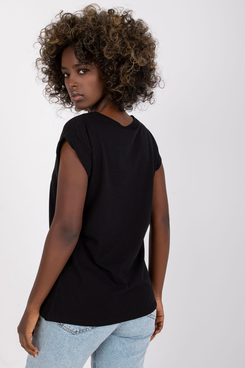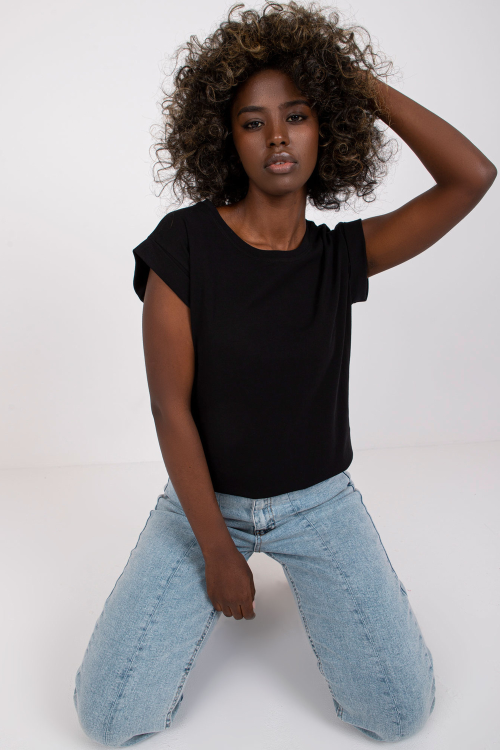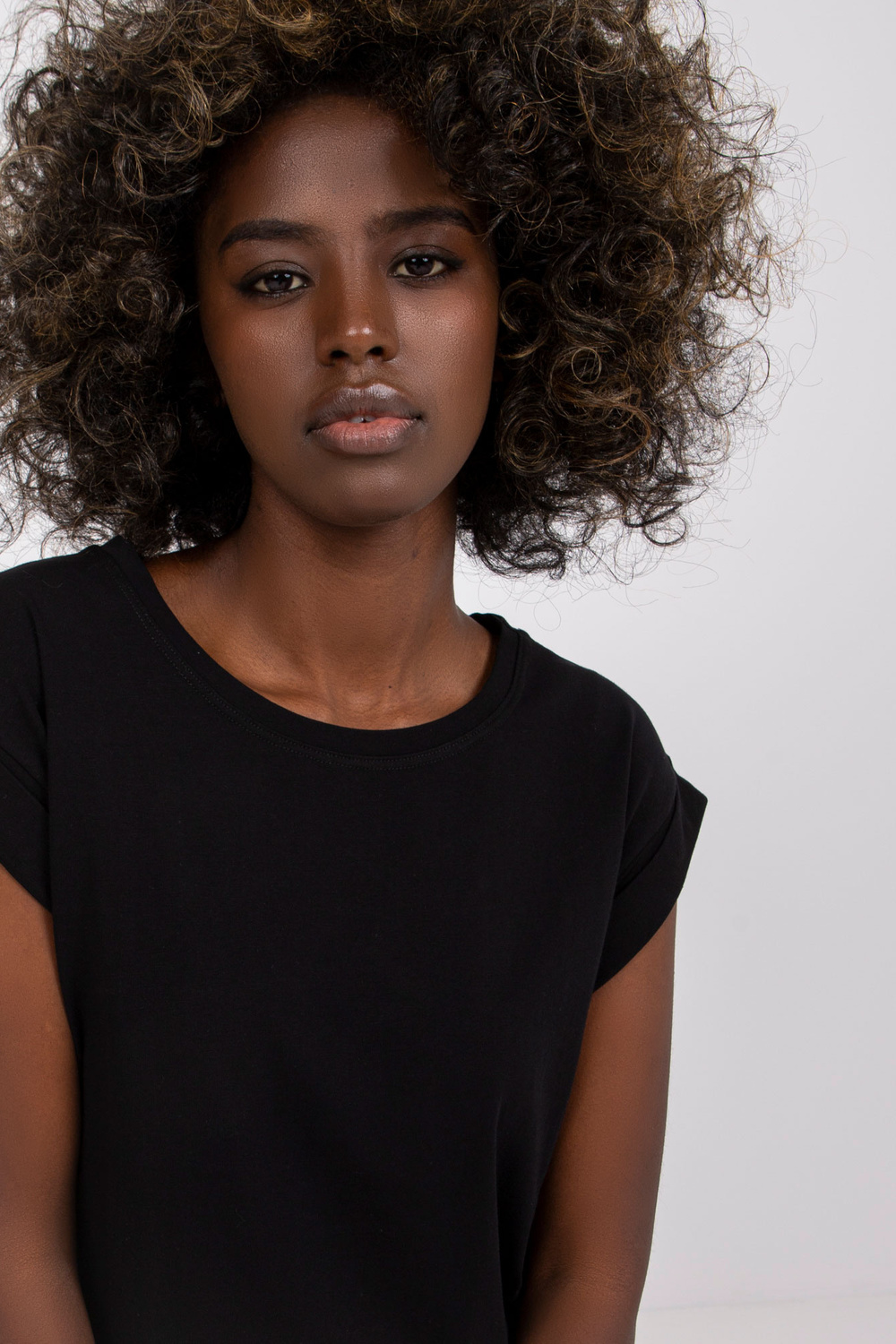 BlackRevolutioni t-särk . Naiste igapäevases stiilimaailmas valitsevad praegu põhistiilis naiste T-särgid. Need on meile kasulikud aastaringselt, kuid eriti hädasti vajame neid soojadel kuudel. Saame neid kanda üksi lühikeste pükste ja seelikutega, aga ka mõne keerukama välimuse elemendina koos dressipluusi, kampsunite või jakkidega. Need sobivad nii tossudel kantavasse sportlikku stiili kui ka leiavad end naiselikumas versioonis koos seeliku ja kontsadega. Sellel lihtsal T-särgil on populaarne ümar kaelus, vaba lõige ja üleskeeratud varrukad, mistõttu sobib see suurepäraselt moekate ja mugavate särkide trendiga. See on valmistatud õhulise puuvilla ja kaasaegse elastaani segust, mis muudab materjali pehmeks ja puudutamisel meeldivaks. Selline naiste T-särk näeb hea välja meie veebikollektsiooni teksadega.