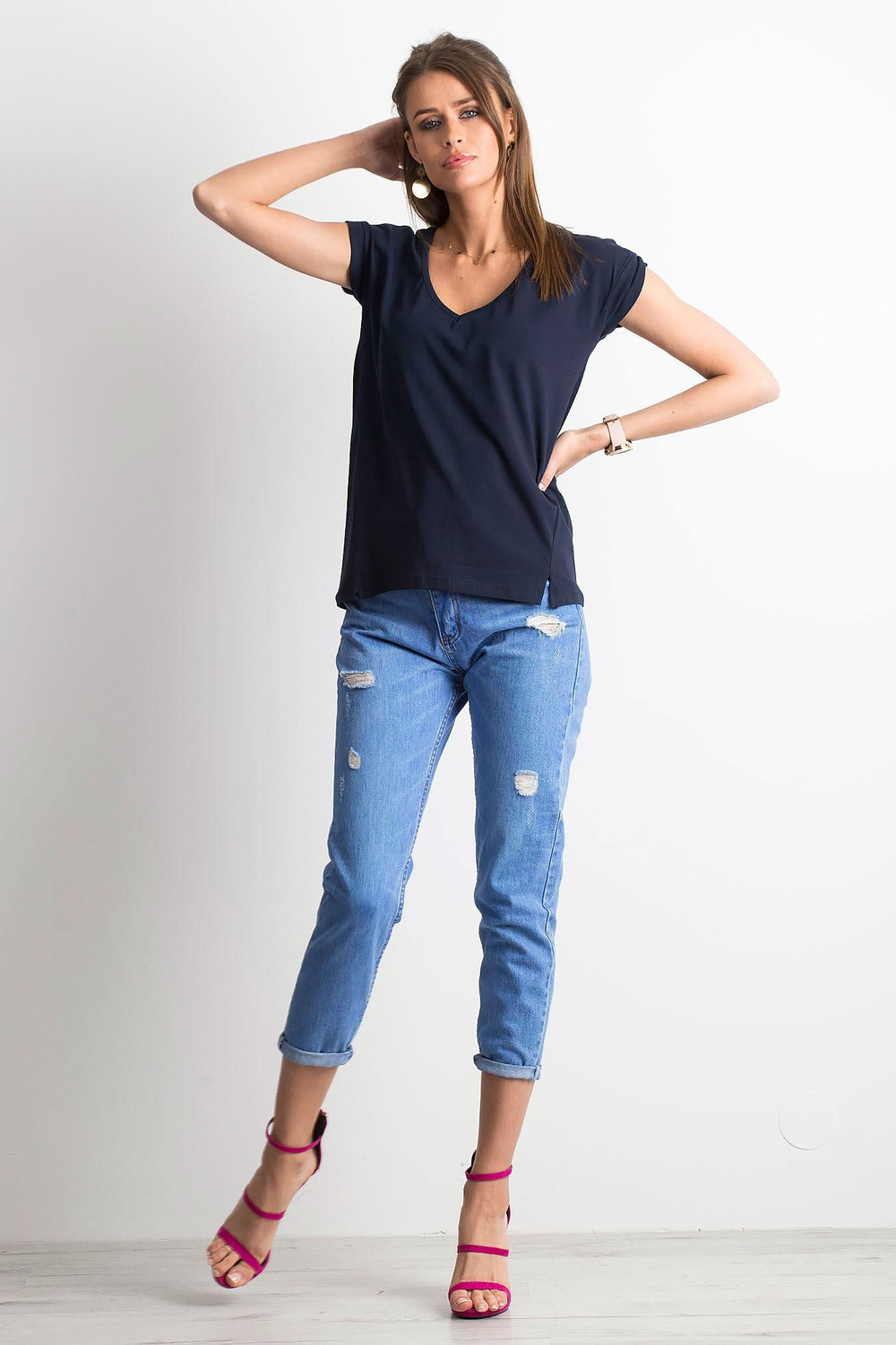 Navyblue Vibesi t-särk. Ühevärvilised puuvillased T-särgid sobivad igapäevaseks väljanägemiseks nagu kleit. Need on mugavad, moodsad ja sobivad kõigega, lisaks ei nõua nende hästi kujundamine põhimõtteliselt mingit pingutust. Nad näevad siluetil suurepärased välja
