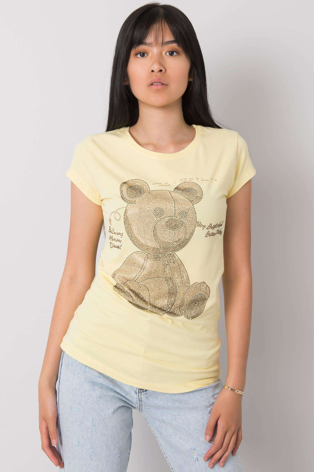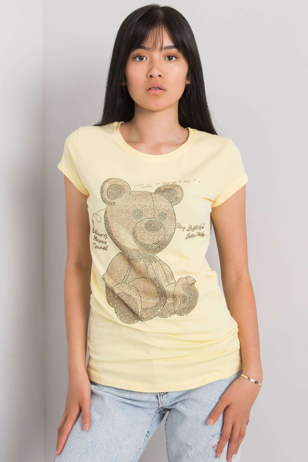 Helekollane Misha aplikatsiooniga T-särk. lisad: kivid materjal koostis: 90% puuvill, 10% elastaan pesumeetod: masinpesu 30°C Mudel kannab suurust S. Modelli mõõdud: kõrgus 167 cm, rind 73 cm, vööümbermõõt 64 cm, puusad 91 cm. Dimen