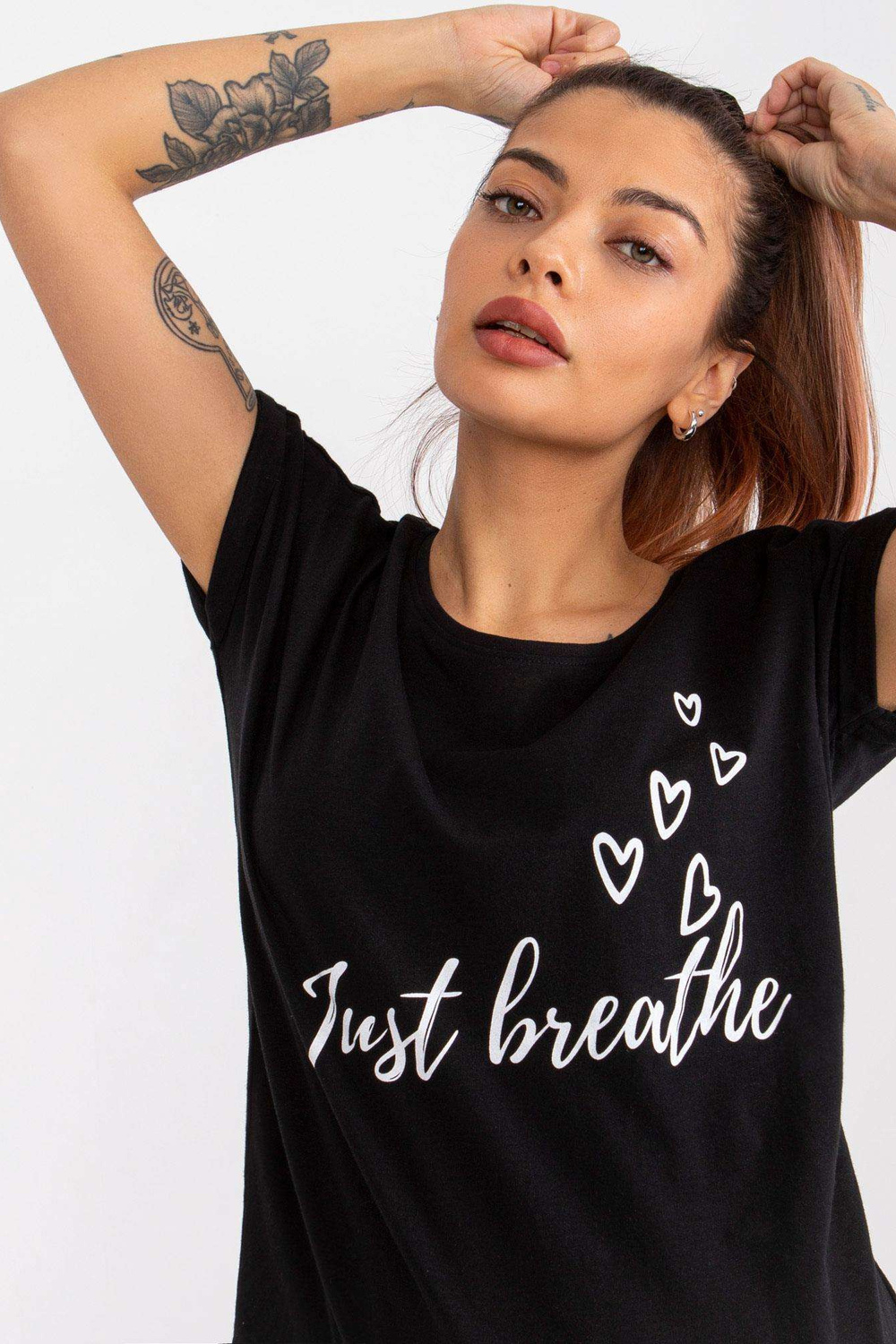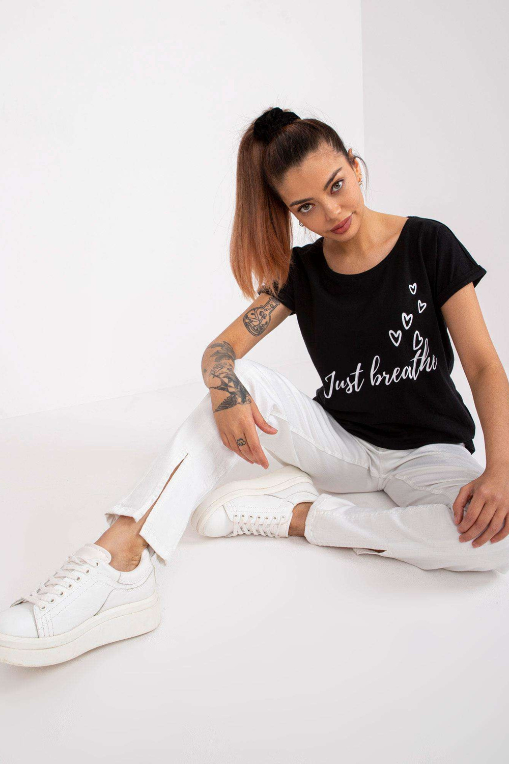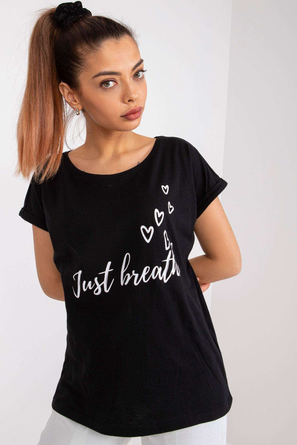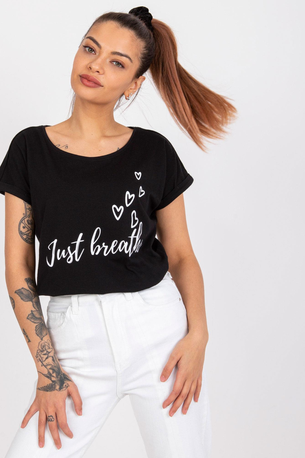 Must T-särk puuvillatrükiga Pola MAYFLIES .