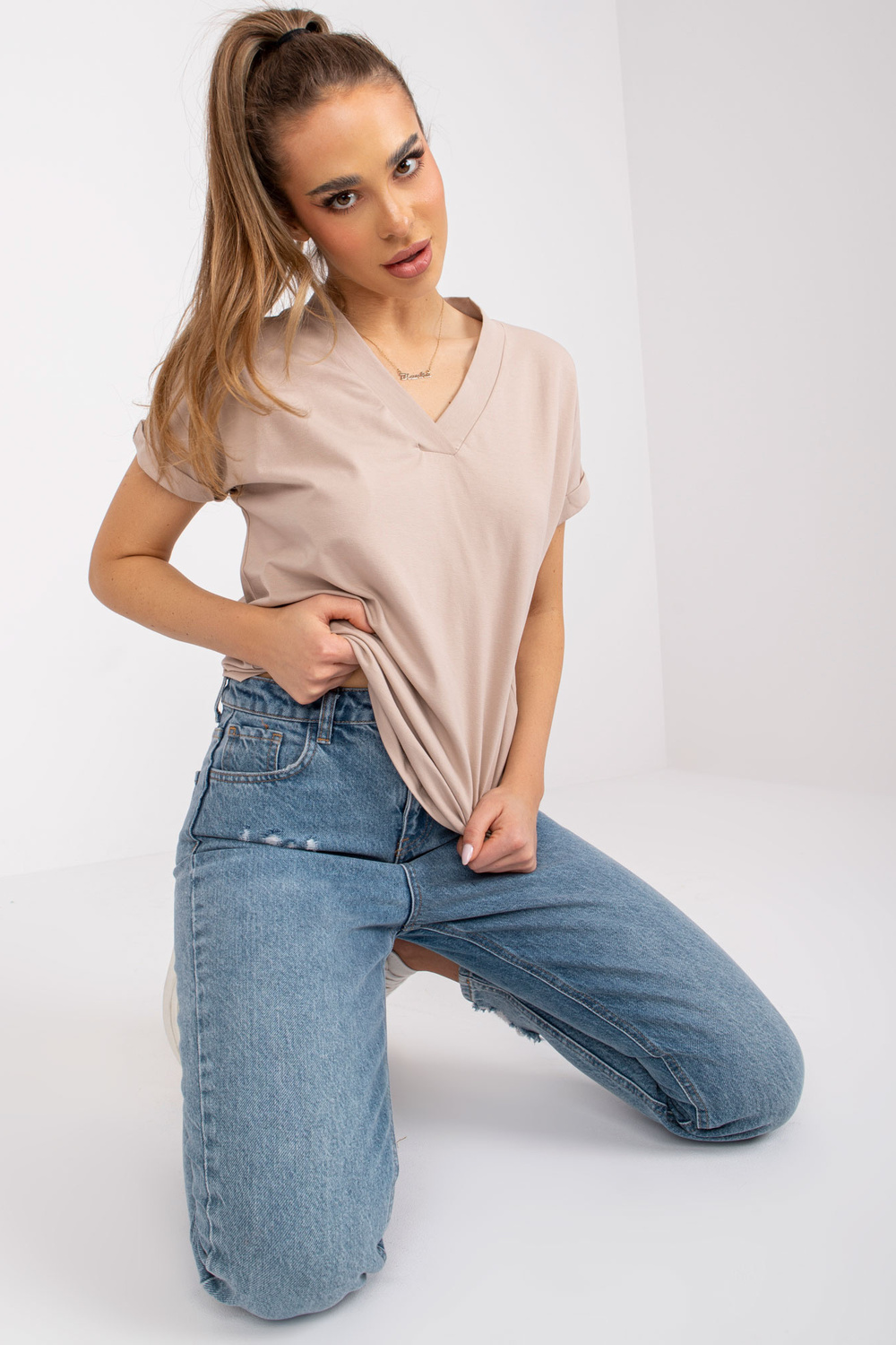 Severine puuvillast beež naiste T-särk .