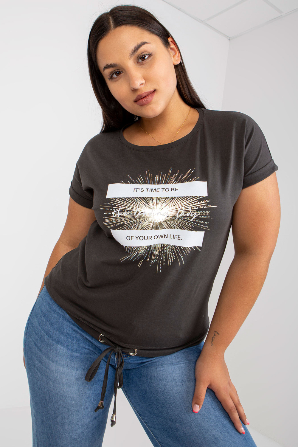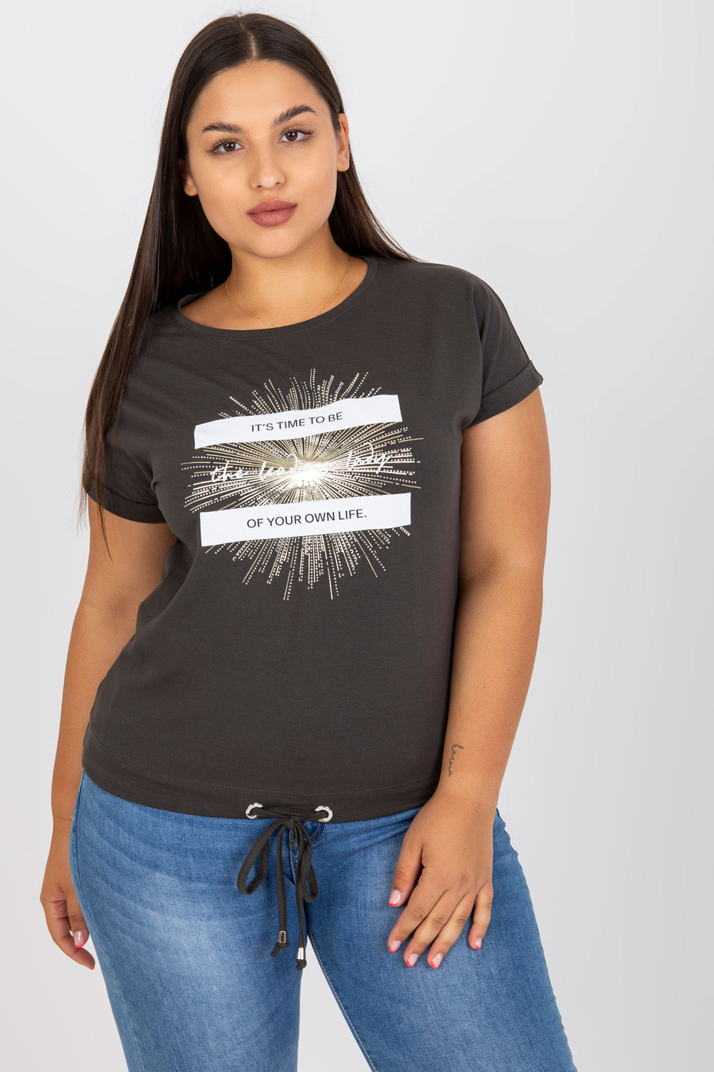 Khakicotton T-särk plusssuuruses trükiga .
