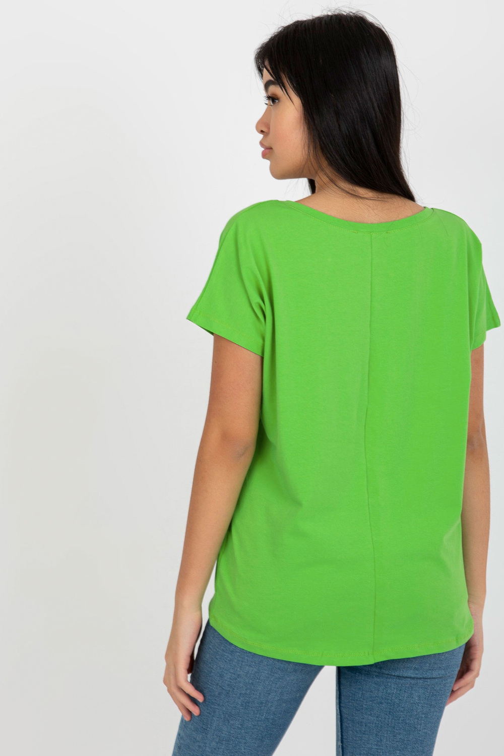 Roheline naiste põhit-särk Emory V-kaelusega. Tootekood: RV-TS-4832.62P Domineeriv muster: sile Stiil: vabaaja üritus: vabaaja, linna, jalutuskäiguks, suveks Modell kannab suurust S. Modelli mõõdud: kõrgus 167 cm, rinnaümbermõõt 73 cm, wai