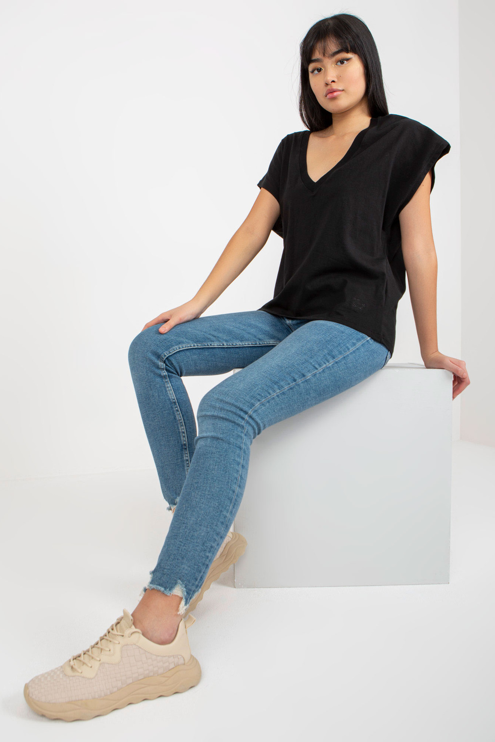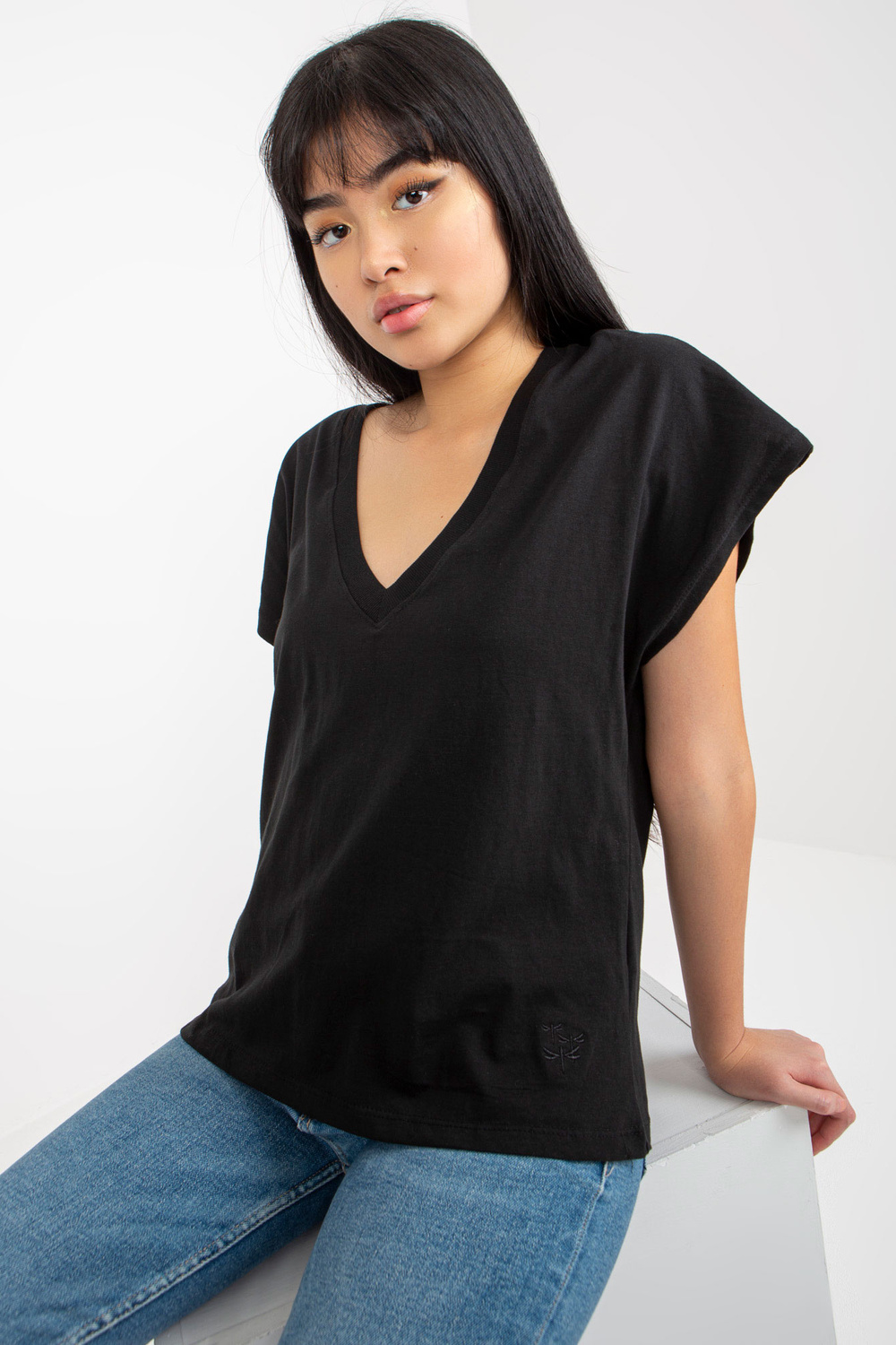 Must naiste T-särk, mis on valmistatud puuvillast MAYFLIES. tootekood: TW-TS-2005.43 domineeriv muster: sile Stiil: vabaaja üritus: vabaaja, linna, jalutuskäiguks, suveks Modell kannab suurust S. Modelli mõõdud: kõrgus 167 cm, rinnaümbermõõt 73 cm, vöökoht