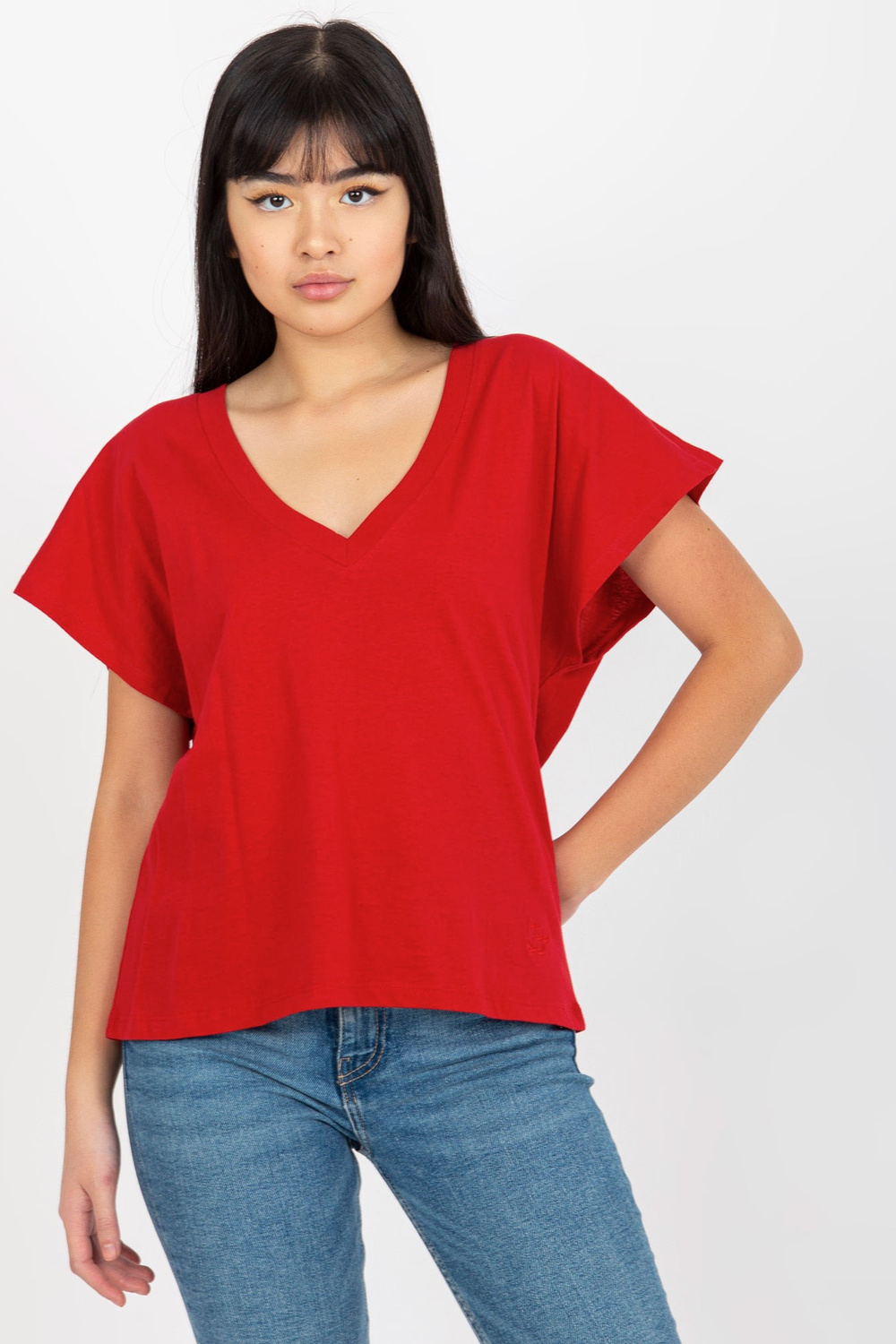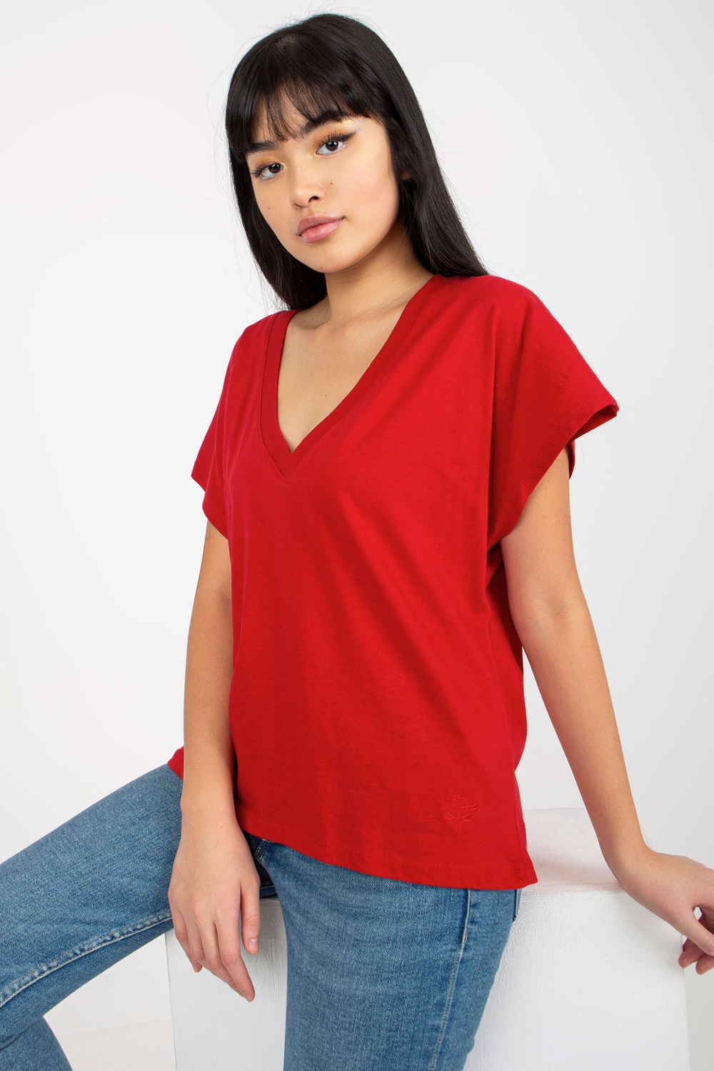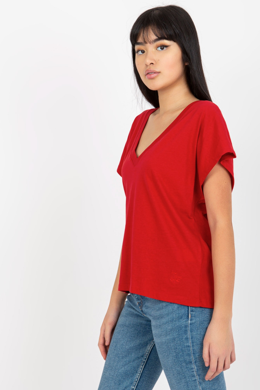 Punane V-kaelusega T-särk MAYFLIES. tootekood: TW-TS-2005.43 domineeriv muster: sile Stiil: vaba sündmus: vabaaja, linna, jalutuskäiguks, suveks Modell kannab suurust S. Modelli mõõdud: kõrgus 167 cm, rinnaümbermõõt 73 cm, vöökoht 64 cm, puus