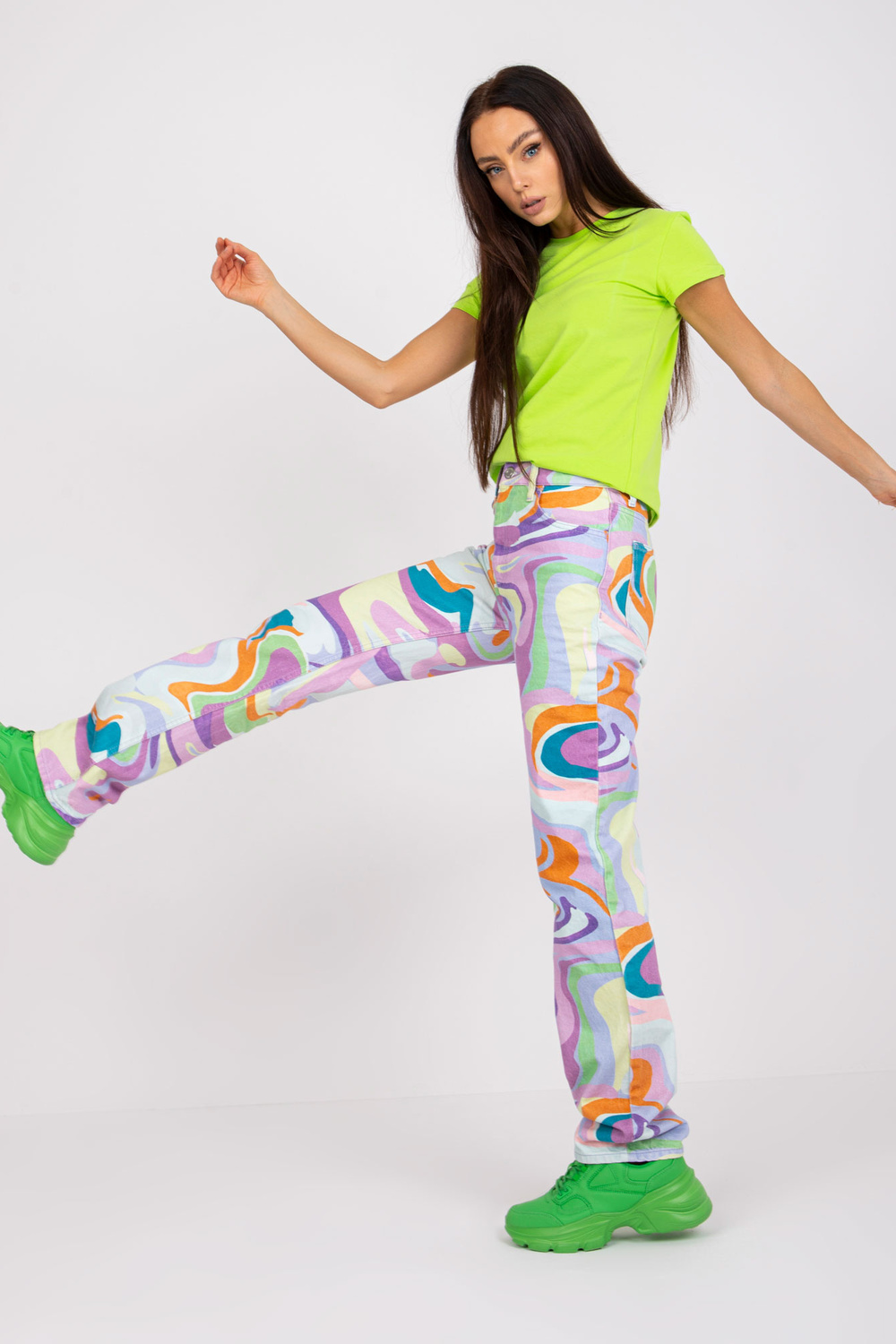 Fluo roheline põhi T-särk Peachy . Sile puuvillane T-särk peaks kindlasti olema iga naise garderoobis. See on rauast klassika, mis võimaldab moodsa, kuid samas minimalistliku ja universaalse välimuse, mida saate oma maitse järgi kohandada. Tavalised T-särgid on ideaalne lähtepunkt muude stiilide loomiseks, sest need sobivad enamiku riietega. Sellel mudelil on klassikalised lühikesed varrukad ja populaarne ümar kaelus, mis muudab selle kandmise lihtsaks ja mugavaks. Tänu oma universaalsele disainile sobib see ideaalselt aastaringselt. See naiste T-särk on valmistatud materjalide segust, sealhulgas puhtast puuvillast ja väikesest kogusest elastaanist. Tänu sellele on T-särk ühtaegu õhuline ja kehale meeldiv, mistõttu tekib tahtmine seda kogu aeg kanda!