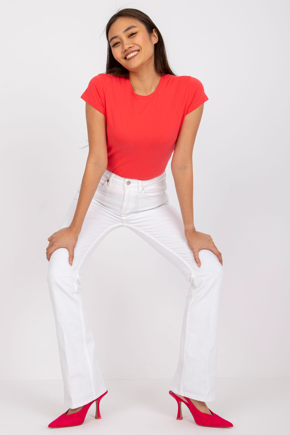 Vaarika Peachy t-särk . Ühevärvilised ühevärvilised T-särgid on enamiku naiste garderoobide kindel lemmik. Meile meeldivad need nende mugavuse, mitmekülgsuse ja uskumatu kandmismugavuse pärast. Sellel mudelil on moodsaim ümar kaelus ja mugavad lühikesed varrukad. Juhuslik, kuid sobivalt naisefiguuri rõhutav lõige sobib suurepäraselt igapäevaste stiilide kujundamiseks. Naiste T-särk on valmistatud kõrgeima kvaliteediga materjalidest kõrge loodusliku puuvilla sisaldusega. Tänu sellele on T-särk hästi ventileeritud ning samas on see pehme ja meeldiv katsudes. Näete, et te ei taha seda ära võtta! Kandke lihtsat puuvillast T-särki koos moodsate teksapükste, elegantsete sigaretipükste või seelikutega ning kõrgete kontsade või spordijalatsidega meie uusimast veebikollektsioonist.