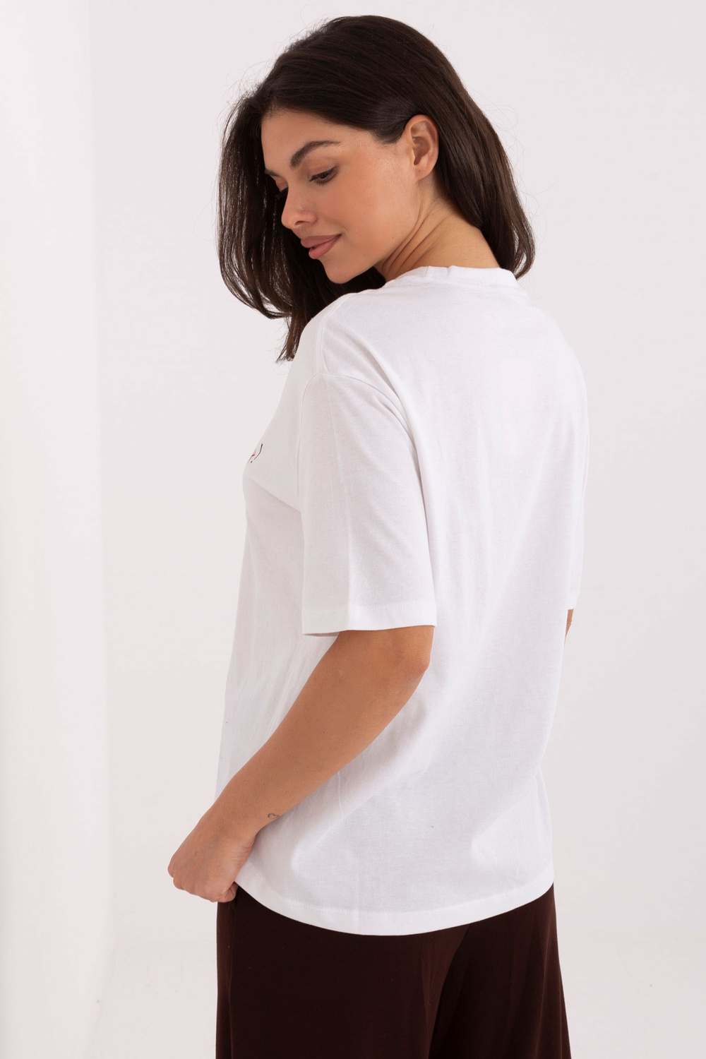 T-särgi mõõdud suuruses S, mõõdetuna laotult: laius kaenla alt - 57 cm, varruka pikkus - 25 cm (õmblusest), laius puusa juures - 60 cm, kogupikkus - 67 cm.