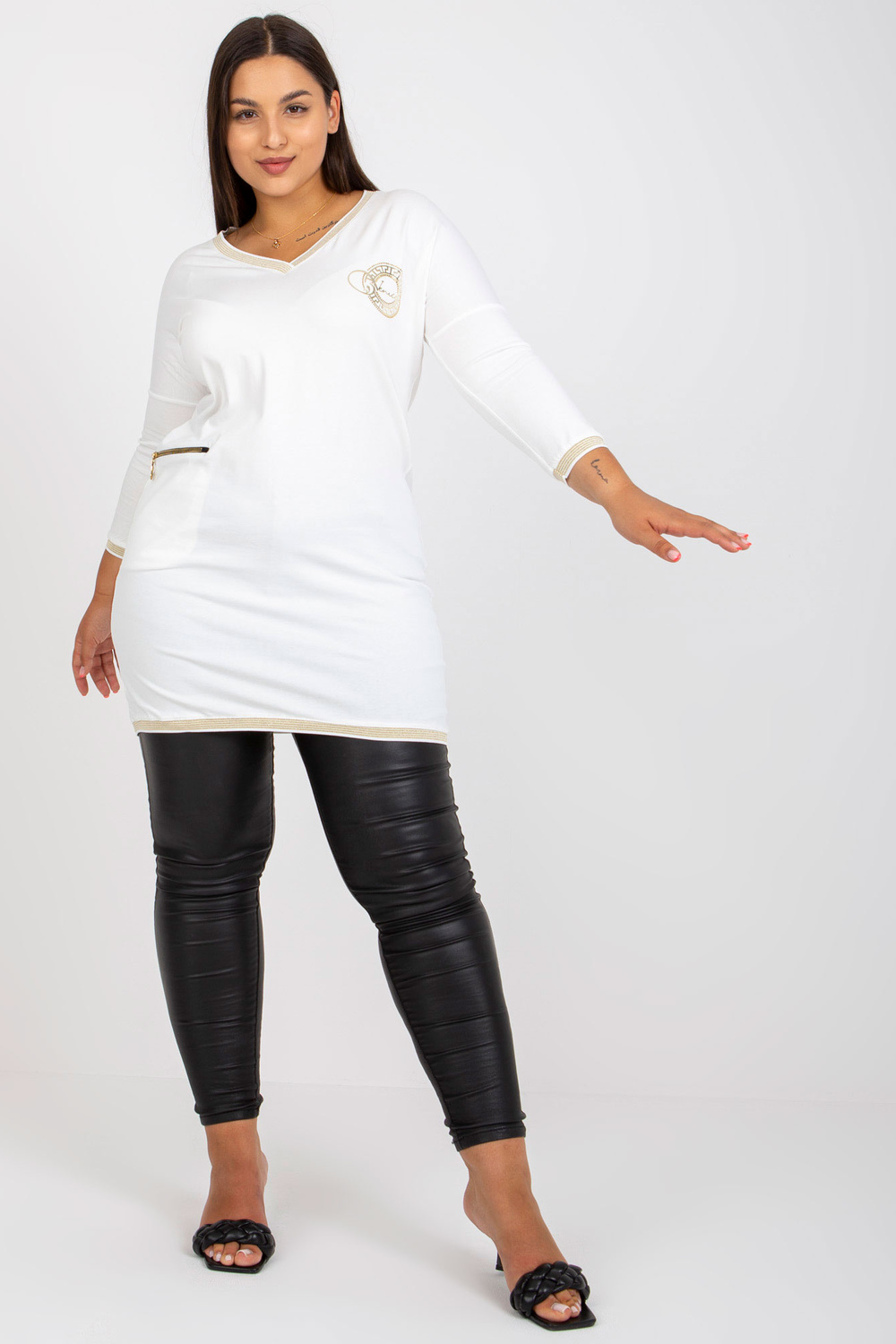 Valgeplus-suuruses puuvillane V-kaelusega tuunika .