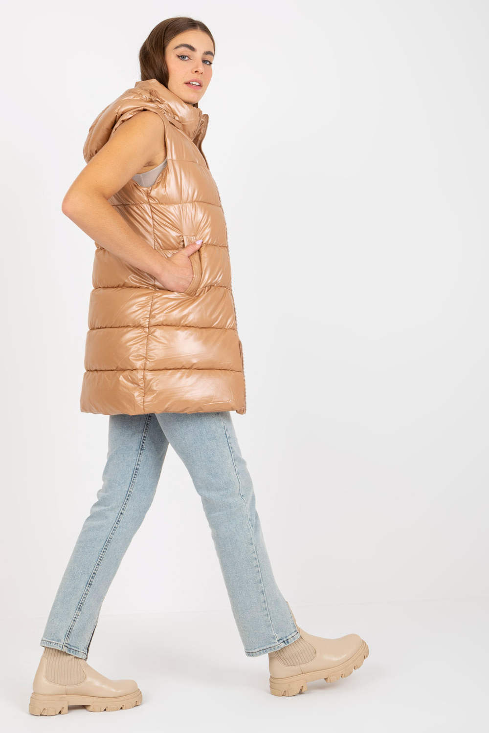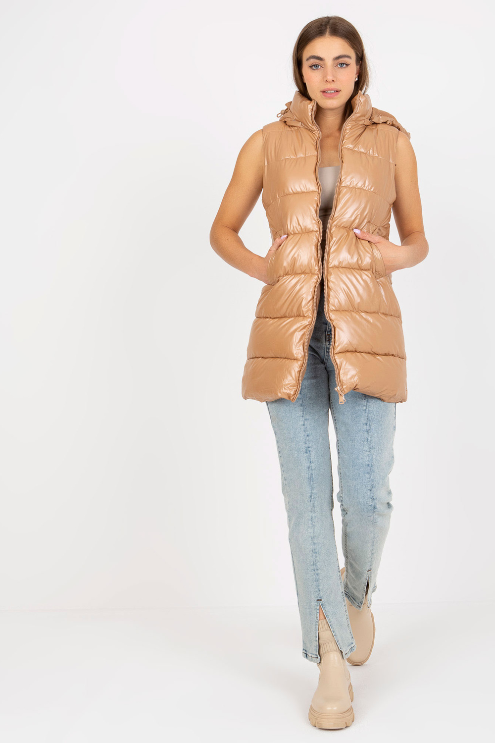 Vesti mõõdud S-suuruses mõõdetuna tasapinnaliselt: laius kaenla alt - 50 cm, kogupikkus - 83 cm.