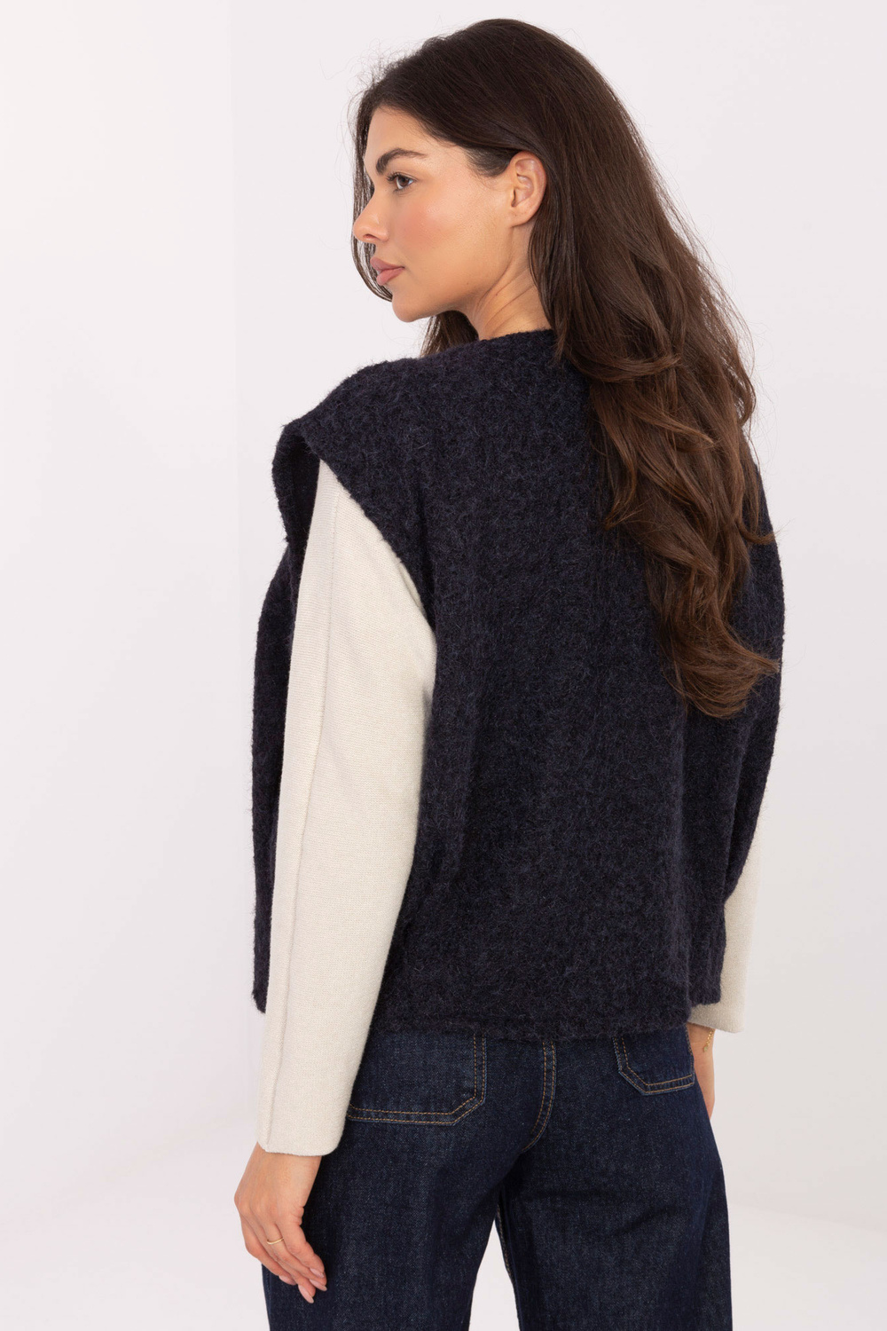 Model kannab ühte suurust riiet. Modeli mõõtmed: pikkus 173 cm, rind 85 cm, vöökoht 62 cm, puusad 95 cm.