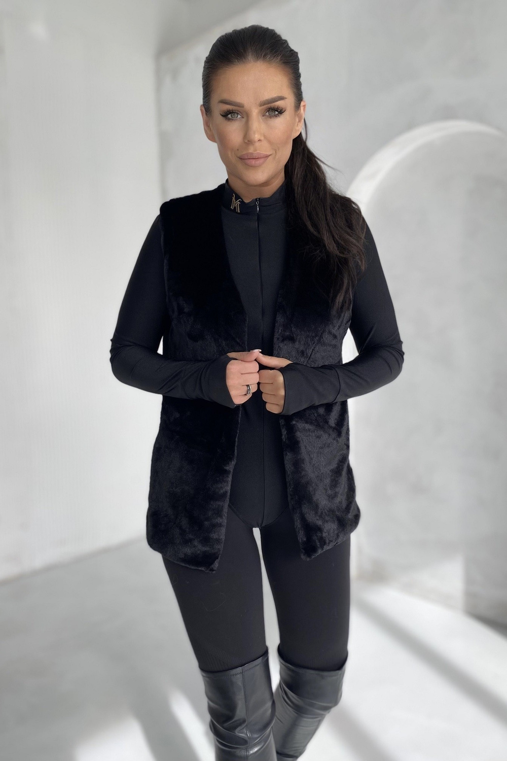Model kannab S suurust. Mudeli mõõtmed: pikkus 178 cm, rind 82 cm, vööümbermõõt 61 cm, puusad 88 cm.